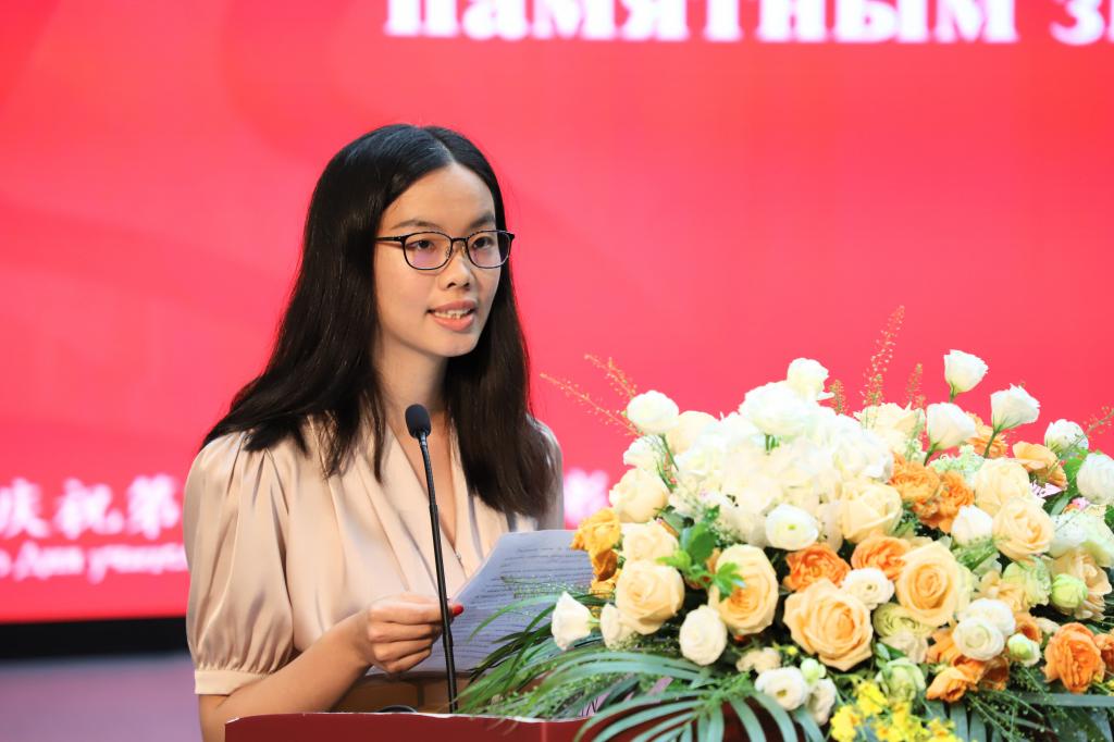 慶祝大會在莊重的中俄兩國國歌聲中拉開序幕。工程系程杞元教授作為資深教師代表首先發言。她深情回顧了四十年的教師生涯,表達了心目中好老師的標準,表示愿與其他銀發資深教師一道,繼續發揮余熱,傳承師德師風,攜手青年教師,為深北莫的奮起、國家富強培養更多棟梁之才。