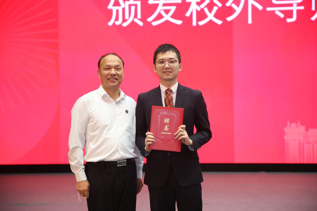 交流會(huì)開場后,朱迪儉代表學(xué)校為校外導(dǎo)師頒發(fā)聘書并致辭。他表示,今天的活動(dòng)適逢黨的二十大勝利召開,因此更具特別的意義。習(xí)近平總書記報(bào)告中關(guān)于“加快建設(shè)高質(zhì)量教育體系,完善科技創(chuàng)新體系” 和“全面提高人才自主培養(yǎng)質(zhì)量”的論述,為學(xué)校進(jìn)一步推進(jìn)高質(zhì)量發(fā)展和人才培養(yǎng)體系建設(shè)指明了方向,今天的經(jīng)驗(yàn)交流會(huì)作為學(xué)校首屆知識(shí)科學(xué)文化節(jié)的系列活動(dòng)之一,正是領(lǐng)會(huì)習(xí)近平總書記重要講話精神的生動(dòng)實(shí)踐。他對(duì)幾位校外導(dǎo)師的到來表示熱烈歡迎,并期待未來繼續(xù)深化合作,共同助力深北莫學(xué)子更好地合理規(guī)劃大學(xué)生活和未來發(fā)展。