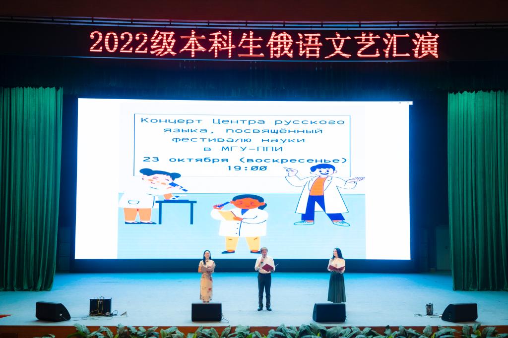 10月23日,深圳北理莫斯科大學首屆知識科學文化節系列活動——“2022級本科生俄語文藝匯演”在學校禮堂順利舉行。本次活動由俄語中心主辦,深圳北理莫斯科大學黨委書記、副校長朱迪儉,第一副校長沙赫賴,黨委副書記、紀委書記陳超峰,學術事務部部長卡爾梅科夫、俄語中心副主任李小青以及300余名在校中俄師生參加活動。