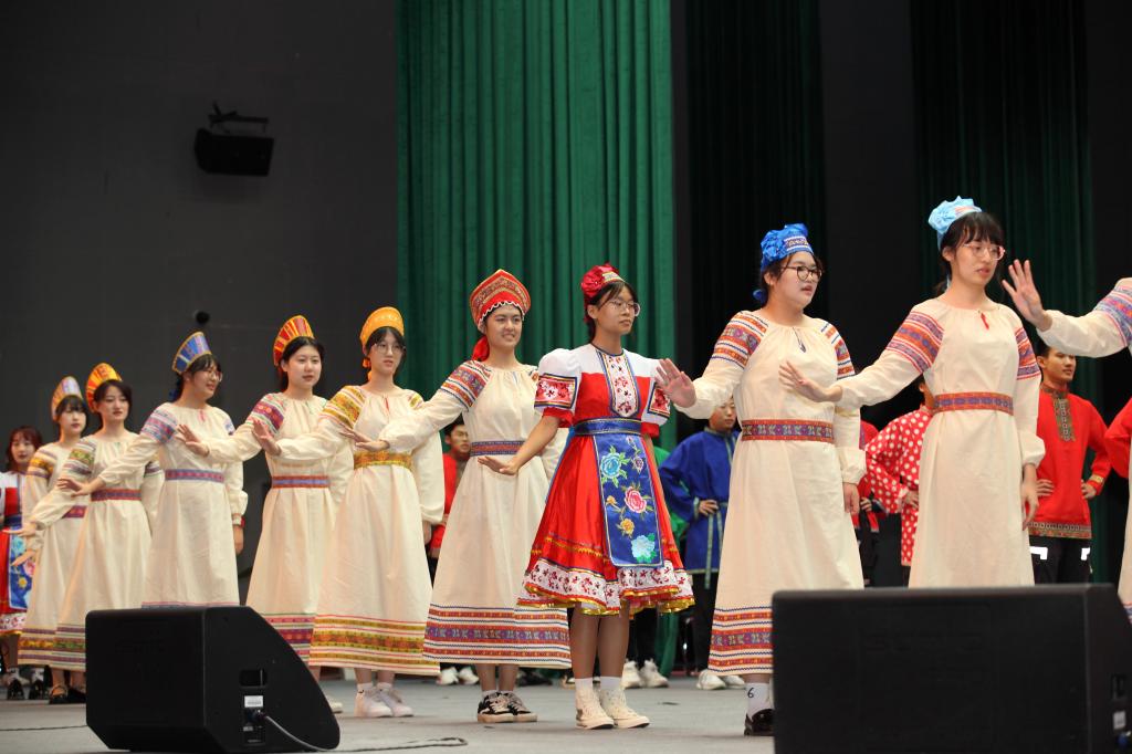 絢麗的舞臺背景、經典的俄羅斯民族服裝、歡快的舞蹈和悠揚的歌聲——富有濃郁俄羅斯民族文化特色的歌舞表演《卡林卡》讓現場變成了一片歡樂的海洋。搖滾俄語歌曲《愛》喚起在場觀眾對美好事物的向往和追求,活力四射的歌聲感染了在場的每一位觀眾。