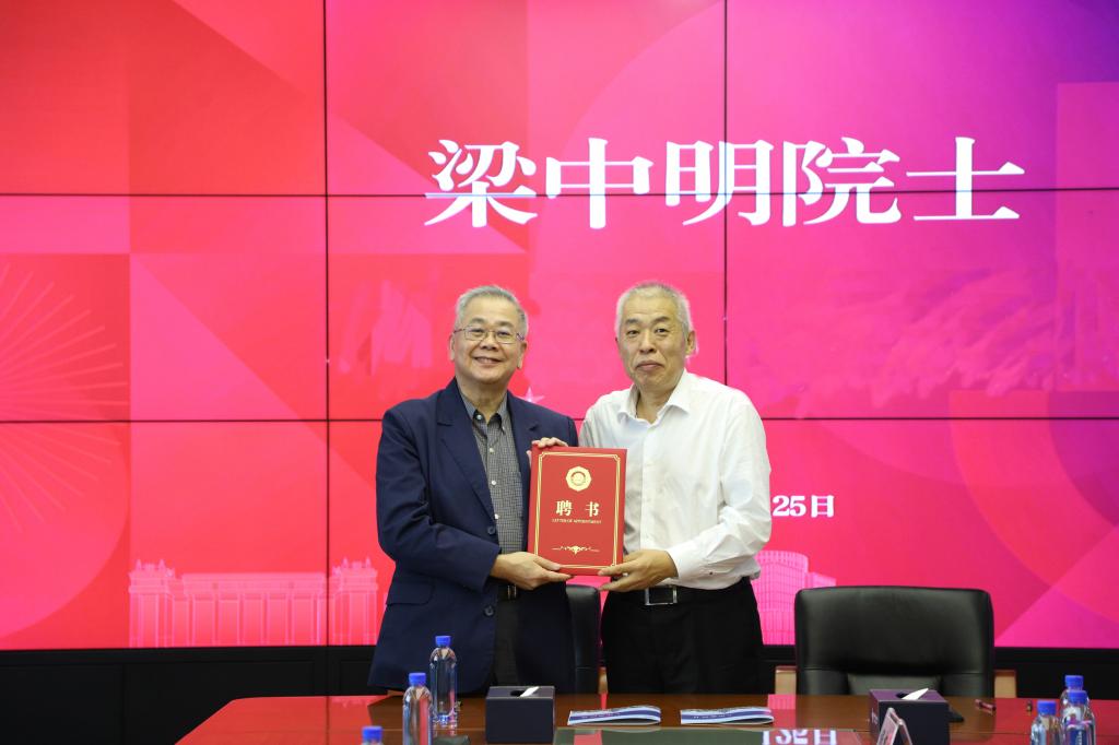 會上,李和章代表學校聘任梁中明擔任學校工程系客座首席科學家。