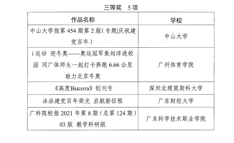 經專家集中評審,五大類項目共評選出一等獎19項,二等獎35項,三等獎51項。其中,優秀新聞作品獲獎20件,優秀校報版面作品獲獎9件。深圳北理莫斯科大學推薦參選的新聞作品和校報版面作品從全省眾多高校中脫穎而出,喜獲佳績,獲獎數量位列深圳市高校前茅,也是全省唯一獲評獎項的中外合作辦學高校。