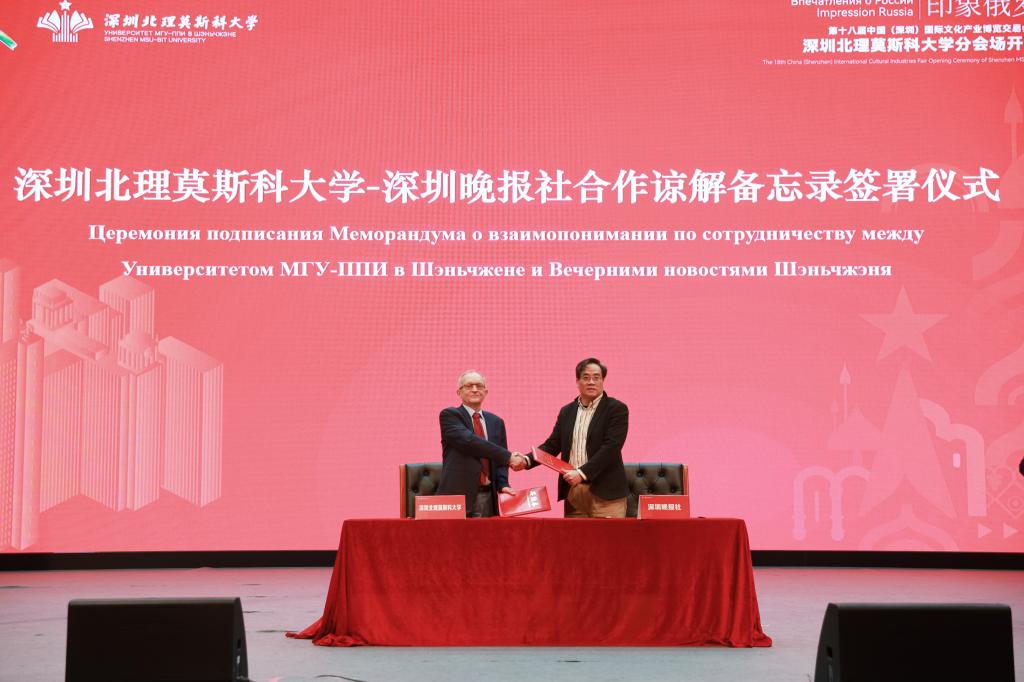 開幕式上,深圳北理莫斯科大學(xué)與深圳晚報(bào)、龍崗區(qū)融媒集團(tuán)分別簽署了合作諒解備忘錄。隨后,與會領(lǐng)導(dǎo)共同啟動開幕式。