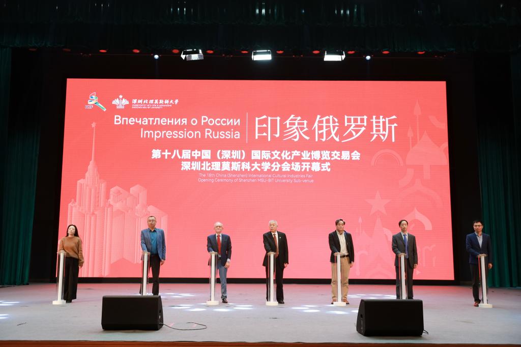 12月27日下午,印象俄羅斯——第十八屆中國(深圳)國際文化產(chǎn)業(yè)博覽交易會深圳北理莫斯科大學(xué)分會場開幕式在學(xué)校禮堂舉行。深圳晚報(bào)副總編輯林航,深圳晚報(bào)音頻中心主任、深圳喜馬拉雅總經(jīng)理李哲哲,龍崗區(qū)融媒集團(tuán)采編總監(jiān)、編委笪峰等領(lǐng)導(dǎo)嘉賓出席開幕式。出席開幕式的還有深圳北理莫斯科大學(xué)校長李和章,黨委書記、副校長朱迪儉,紀(jì)委委員、學(xué)校辦公室主任謝歡欣,語言系主任列杰涅夫和語言系中方主任周興武以及部分師生代表。