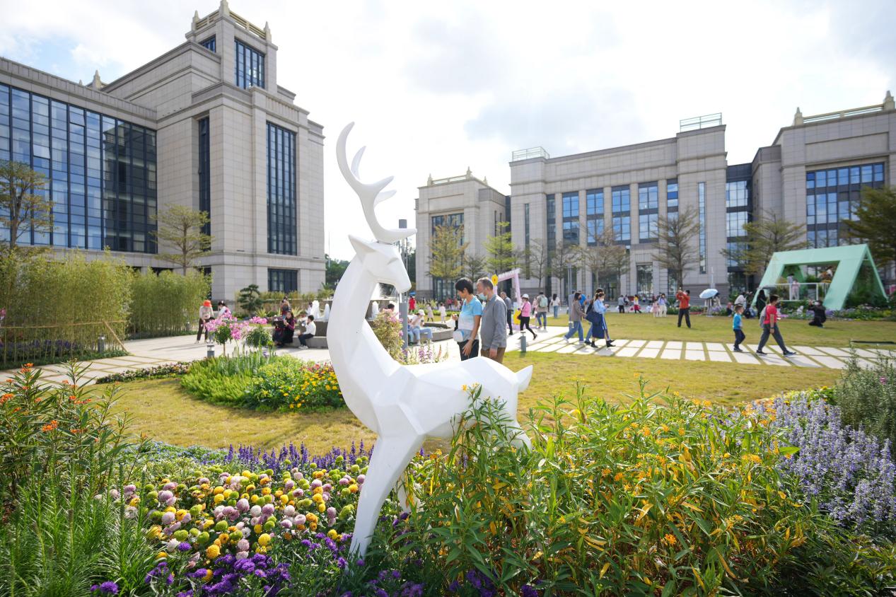 走進深北莫,處處皆是“打卡圣地”。學校正門設有“俄羅斯方塊”創(chuàng)意門頭。步入校園,“椅子花園”、“春回大地花境”、“青春樂章”等12個主題花境和兔年快樂打卡點在花市區(qū)域呈現(xiàn),營造濃厚的節(jié)日氛圍。