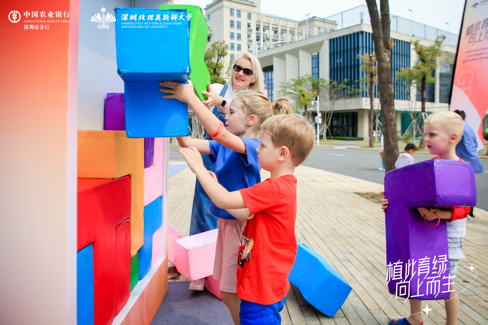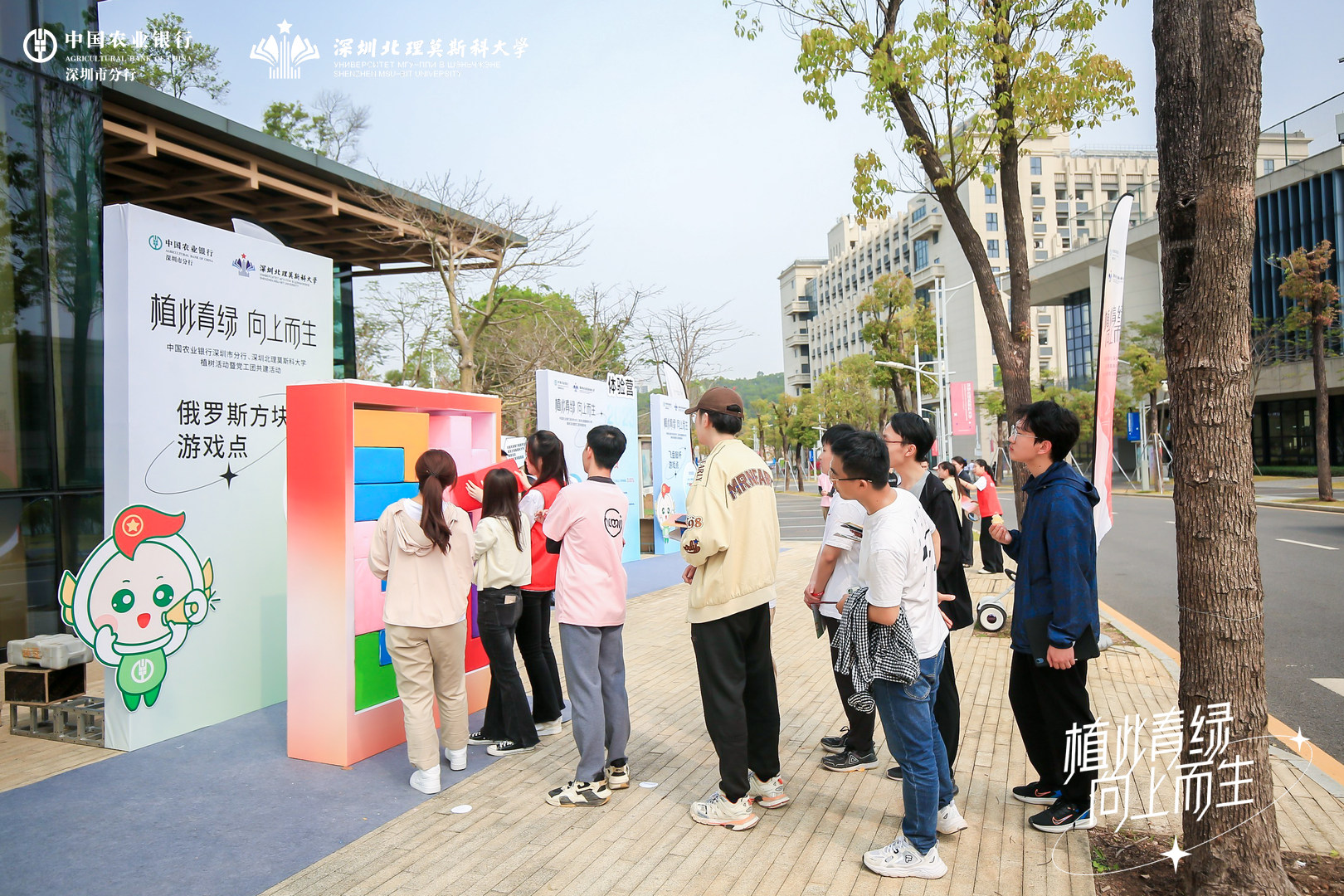 植樹環節結束后,大家來到學生活動中心前的互動體驗點開啟了闖關模式,俄羅斯方塊、擲飛盤等關卡通關即可獲得小禮品,還可以通過現場問答環節等形式學習知識。最后,整個活動在汗水交織和歡聲笑語中順利落下帷幕。