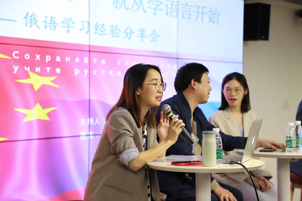 在兩個(gè)多小時(shí)的座談會(huì)上,主持人和嘉賓們就俄語(yǔ)聽(tīng)力、口語(yǔ)、詞匯和語(yǔ)法四方面分享了各自的學(xué)習(xí)經(jīng)驗(yàn)。比如可以通過(guò)聽(tīng)由易到難的俄語(yǔ)錄音、先掌握正確的俄語(yǔ)發(fā)音、做聽(tīng)抄訓(xùn)練等方法提高聽(tīng)力水平,通過(guò)背課文完成知識(shí)儲(chǔ)備與輸入、再在實(shí)踐中自信表達(dá)自己、運(yùn)用影子訓(xùn)練法、反復(fù)模仿等提高口語(yǔ),結(jié)合語(yǔ)境中記單詞等。