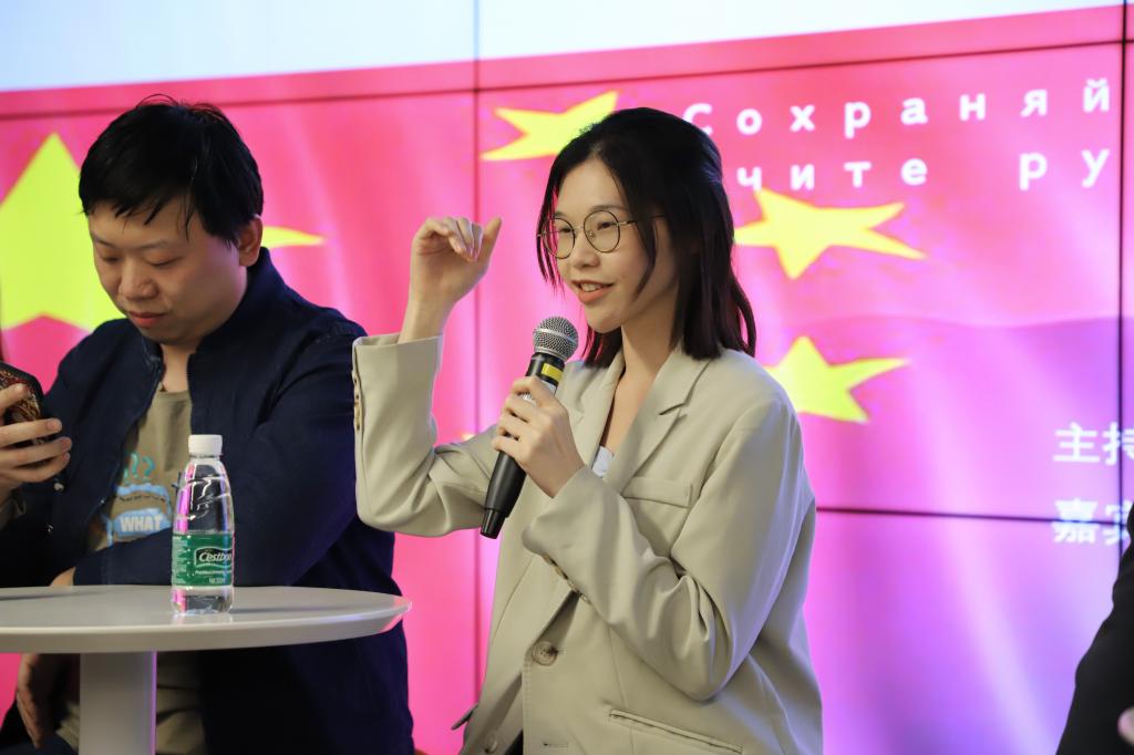 語(yǔ)言系中方主任周興武作為開(kāi)場(chǎng)嘉賓介紹活動(dòng)宗旨,座談會(huì)由語(yǔ)言系教師鄒璐薇主持,座談嘉賓分別是四位具有優(yōu)秀語(yǔ)言能力的教師、行政人員和學(xué)生,他們分別是:俄語(yǔ)中心資深教師、全國(guó)俄語(yǔ)大賽優(yōu)秀指導(dǎo)教師朱蝶,學(xué)術(shù)事務(wù)部老師崔哲元,組織人力資源部老師陳漢知和語(yǔ)言系2022級(jí)研究生鄺淑茹。組織人力資源部馬克西姆老師作為“神秘嘉賓”到場(chǎng),分享自己學(xué)漢語(yǔ)的經(jīng)驗(yàn)。