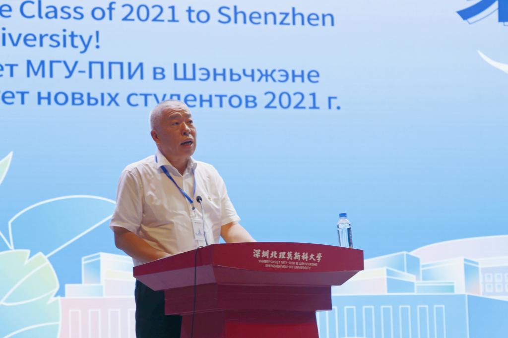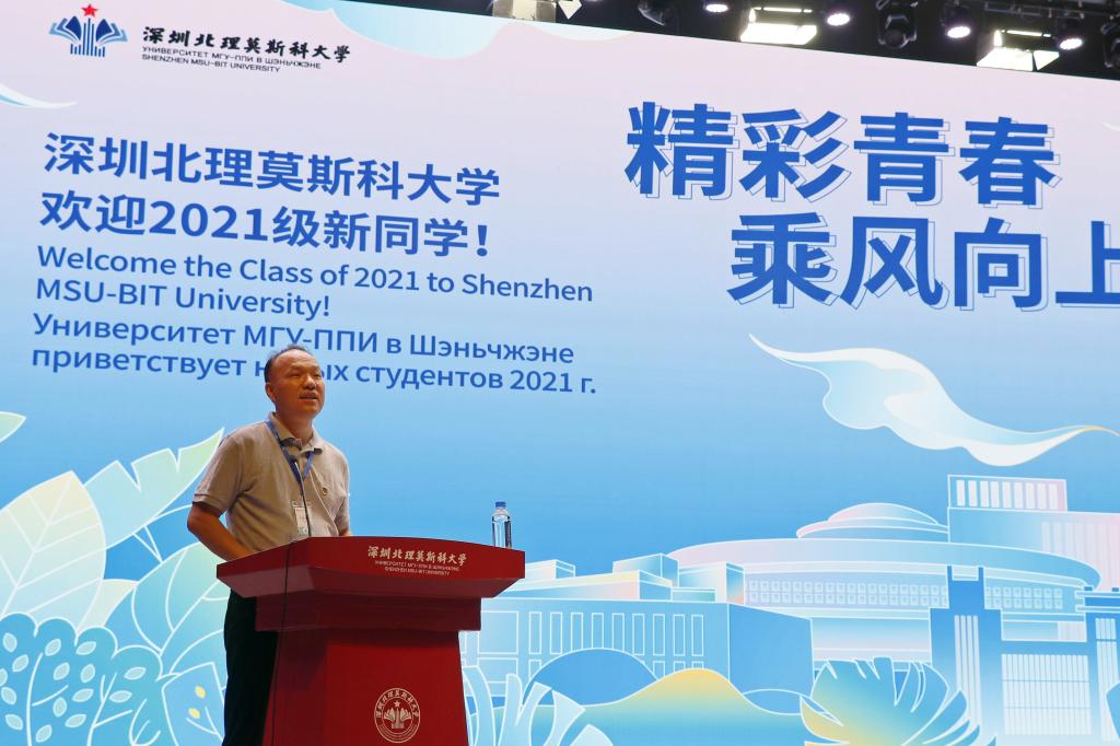 在見面會上,學術事務部副部長楊剛介紹了學校教學情況,工程系副主任程杞元作為教師代表發言。深圳北理莫斯科大學第一副校長謝·米·沙赫賴以及將為新生開展俄語強化培訓的教師團隊專門為見面會錄制了視頻,向新生們發出來自莫斯科的問候。