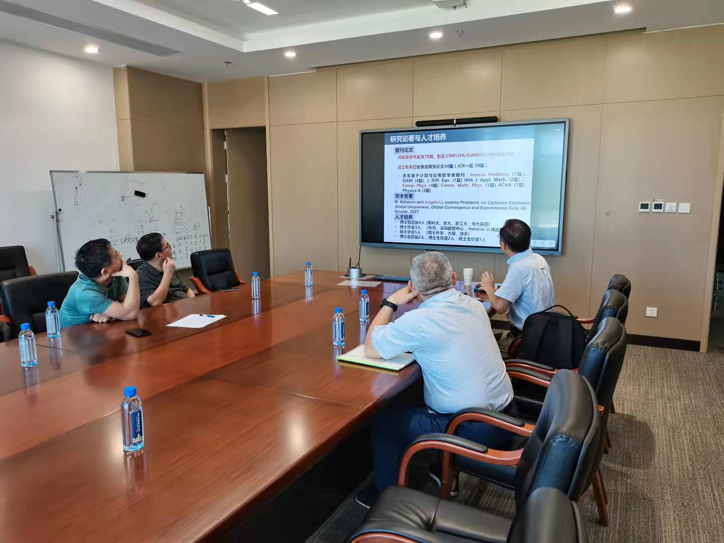 會(huì)議期間,各專家深入探討反問(wèn)題與科學(xué)計(jì)算領(lǐng)域所面臨的機(jī)遇、挑戰(zhàn)和未來(lái)發(fā)展方向,以推動(dòng)學(xué)科的發(fā)展和進(jìn)步,促進(jìn)反問(wèn)題與科學(xué)計(jì)算研究領(lǐng)域?qū)W者的學(xué)術(shù)交流與合作。劉繼軍教授介紹了東南大學(xué)丘成桐中心和南京應(yīng)用數(shù)學(xué)中心的發(fā)展近況;艾春榮教授介紹了香港中文大學(xué)(深圳)經(jīng)管學(xué)院的運(yùn)行模式和發(fā)展前景;李景治教授介紹了南方科技大學(xué)反問(wèn)題的研究進(jìn)展;張曄教授介紹了莫斯科大學(xué)和深圳北理莫斯科大學(xué)的數(shù)學(xué)發(fā)展歷史和反問(wèn)題的研究現(xiàn)狀。值得一提的是,會(huì)議委員會(huì)決定將于2022年寒假期間在深圳北理莫斯科大學(xué)舉辦“第一屆反問(wèn)題與科學(xué)計(jì)算冬季學(xué)校”。