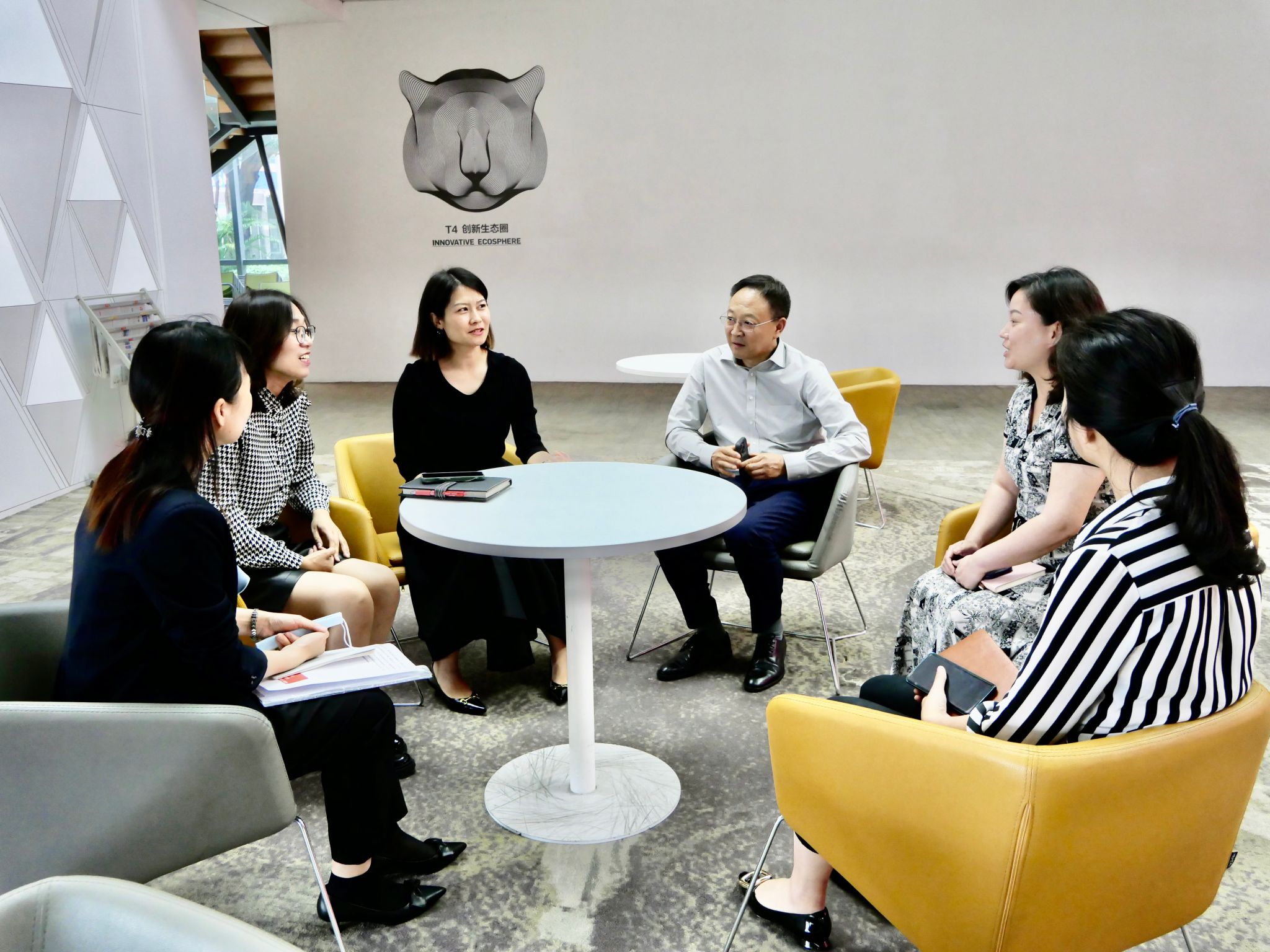 張楊一行首先觀看了天安數(shù)碼城宣傳片,詳細(xì)了解了天安數(shù)碼城(集團(tuán))發(fā)展歷史、園區(qū)規(guī)模、入駐企業(yè)、孵化模式等并與深圳市超頻三科技股份有限公司、深圳市博遠(yuǎn)科技創(chuàng)新發(fā)展有限公司、深圳市中易騰達(dá)科技股份有限公司等園區(qū)內(nèi)優(yōu)質(zhì)企業(yè)圍繞學(xué)生就業(yè)、校企合作、科研轉(zhuǎn)化等方面展開深入交流。