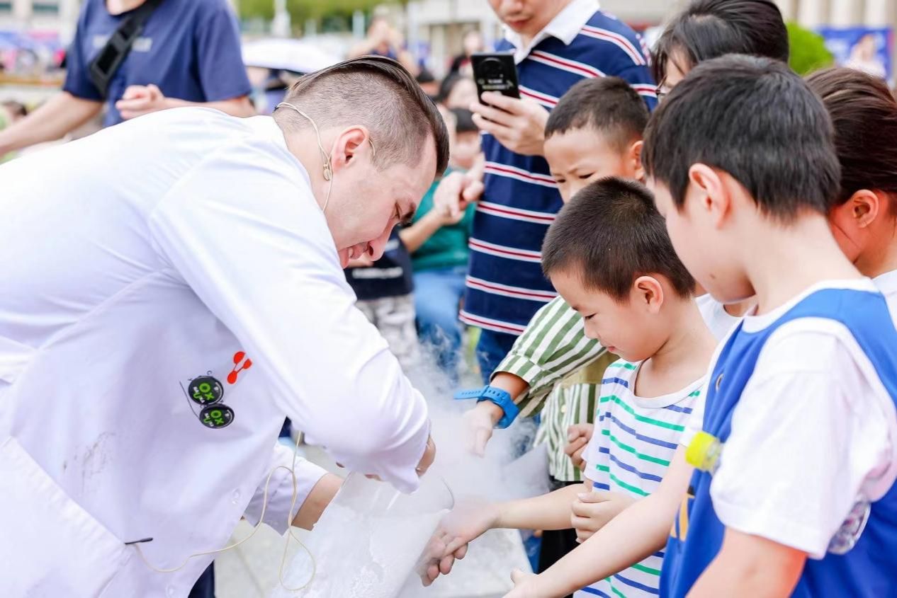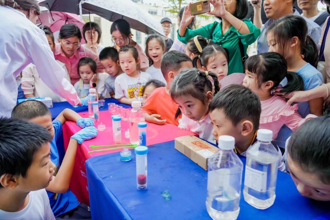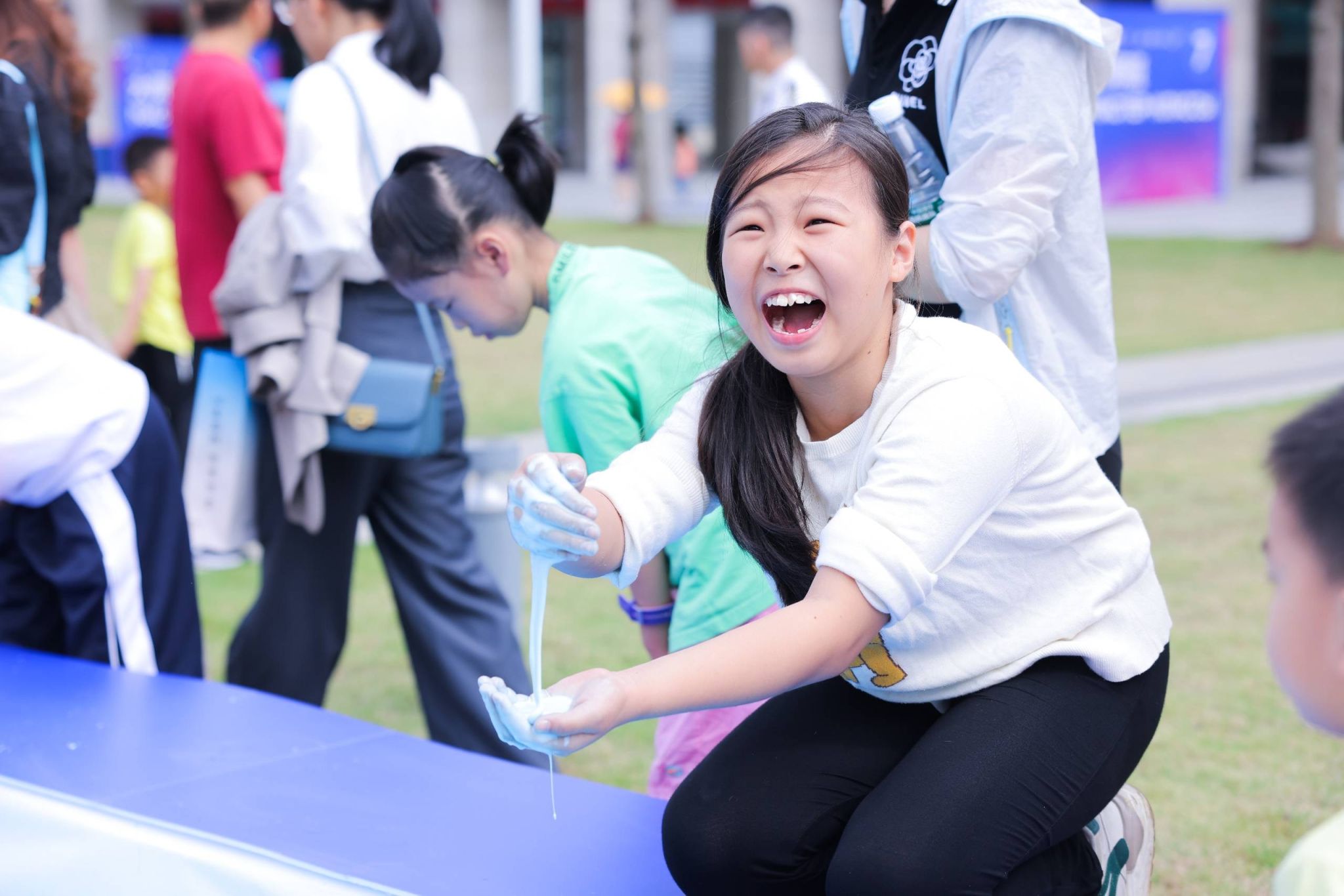 “三、二、一!砰!”隨著現場觀眾的倒數,站在湖畔舞臺上的導師,用水槍把水射向混合了鎂粉和硝酸銀的粉堆,一團火焰噴涌而出,引得觀眾們驚叫不止。直至這場科學秀結束,大家都還在回味那團猝不及防的火和數不清的精彩瞬間。“親眼看了之后,更加覺得理科果然很有趣!”來自坪山的高二理科生戚同學坐在舞臺前被這場科學秀實驗深深吸引,他希望可以在這次活動中,體驗不同學科的魅力,找到未來更感興趣的學習方向??茖W秀散場后,湯女士領著一群小朋友在舞臺旁合影留念,“孩子們都是一個班的同學,我們十幾個家庭約好一起來參加這個活動?!睖啃ΨQ自己是這十幾個孩子的“領隊”,她希望孩子們可以和自己的朋友一起動手,感受科學的魅力。