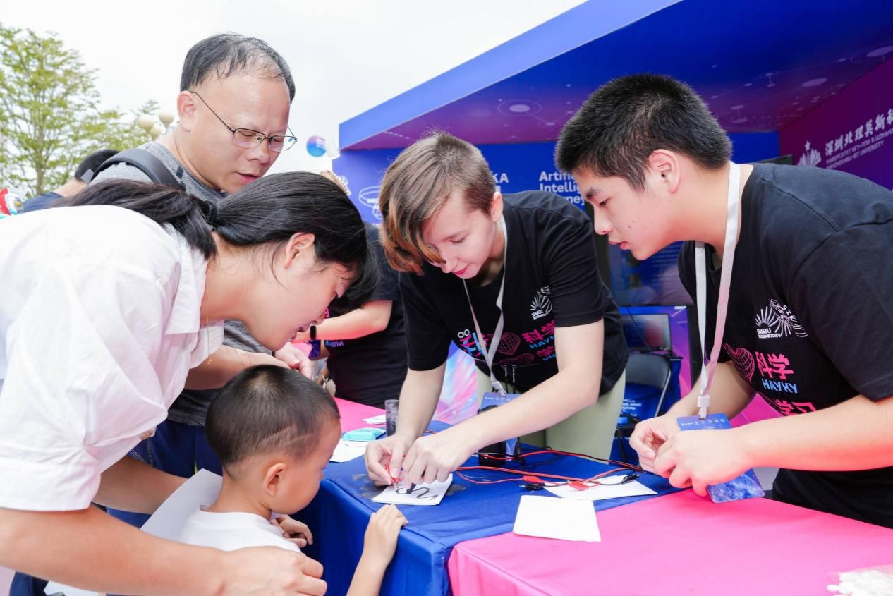 被團團圍住的大師班帳篷,互動區前長長的隊伍,掌聲不斷的講座,隨處按下快門記錄精彩瞬間的參與者,本屆知識科學文化節開放周的活動,吸引了眾多的學生和家長參與其中。實驗的講解聲與觀眾的驚嘆聲交映,講座的分享與聽眾的掌聲交融,一場知識科學文化盛宴正在深北莫的校園上演。