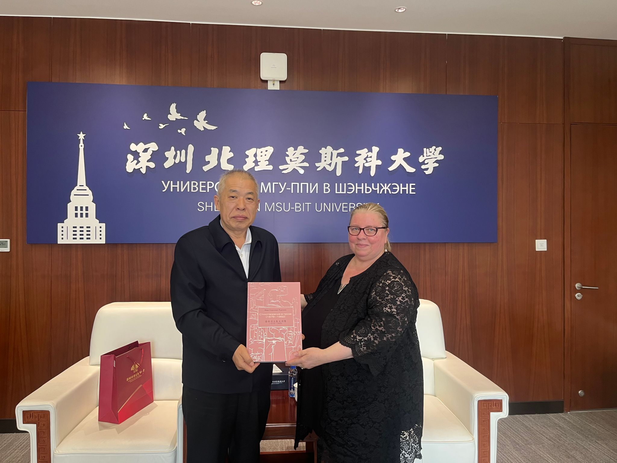 11月14日,俄羅斯聯邦駐華大使館一等秘書、北京俄羅斯文化中心主任吳丹娜到訪深圳北理莫斯科大學,學校校長李和章與第一副校長伊萬琴科分別與其會面。