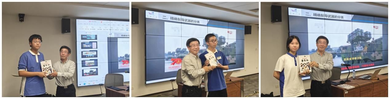 報告前,付強贈送科普融媒書《精確制導(dǎo)三部曲》給深北莫附中,并鼓勵同學(xué)們好好學(xué)習(xí),明確努力方向,將來用所學(xué)知識建設(shè)偉大祖國。