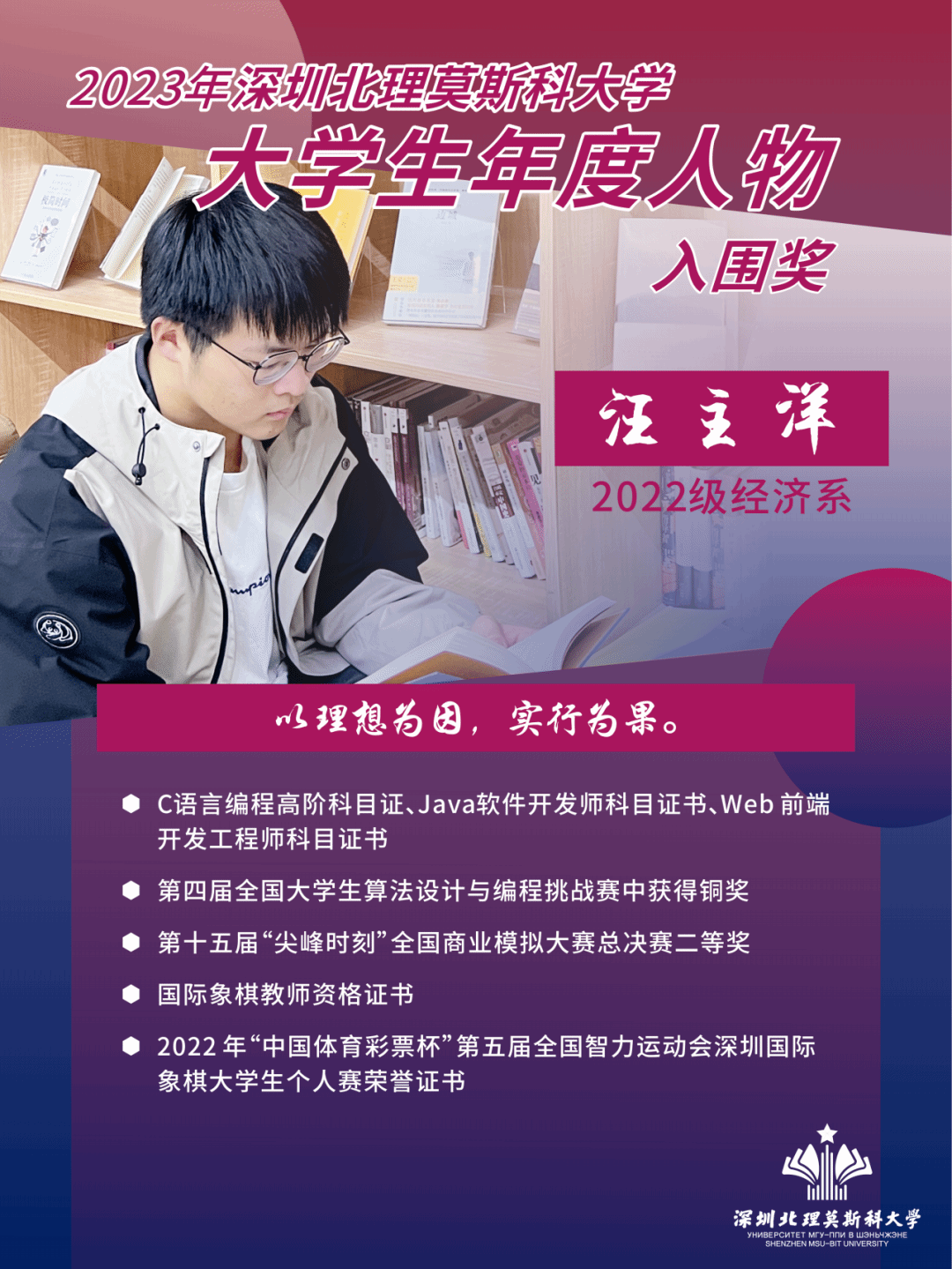 享受過程,刻苦學習。進入深圳北理莫斯科大學后,他繼續勤奮地學習。截至2023年,他已連續多次獲得學校頒發的獎學金,包括兩次廣東省政府來粵留學生獎學金以及兩次深圳大運留學基金會資助。這些獎學金不僅為他的中國學習和生活提供了經濟支持,還使他更加專注于學習過程。