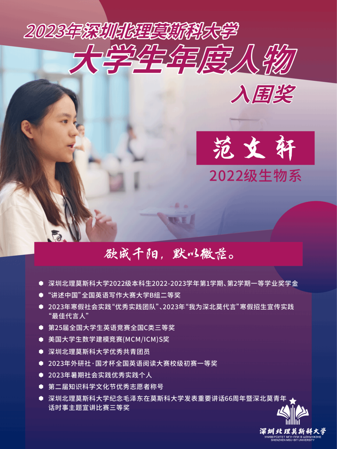 此外,有8名候選人獲得了2023年深圳北理莫斯科大學年度大學生人物“入圍獎”榮譽稱號。