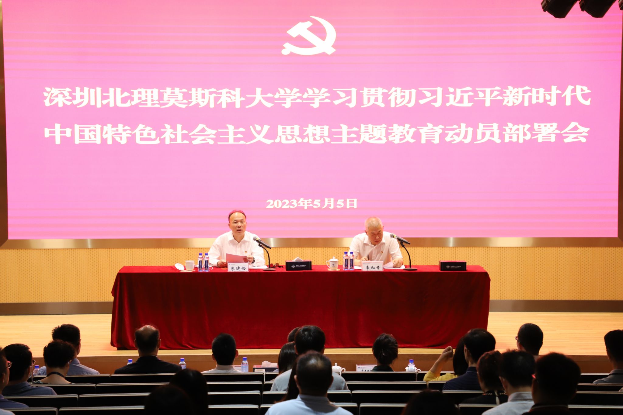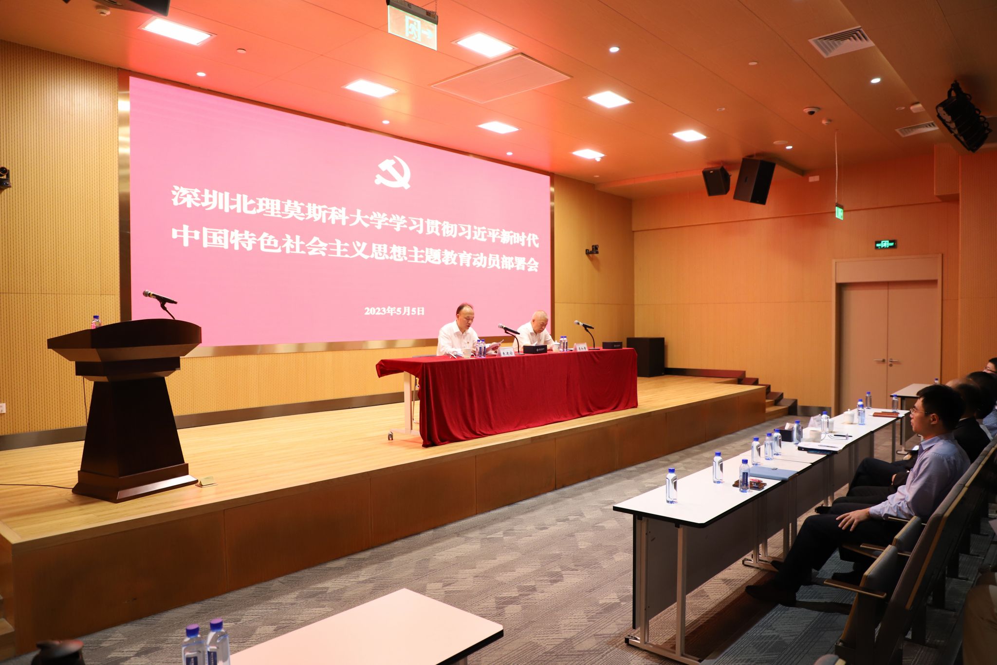 5月5日,深圳北理莫斯科大學召開學習貫徹習近平新時代中國特色社會主義思想主題教育動員部署會。學校黨委副書記、校長李和章主持會議,黨委書記、副校長朱迪儉作動員講話。市委教育工委、市教育局主題教育領導小組辦公室車傳鶴、張潔同志列席會議;學校中方領導,黨委委員、紀委委員,各部門、系、中心副職以上中層干部,各黨支部書記、支委委員,師生黨員代表等參加會議。