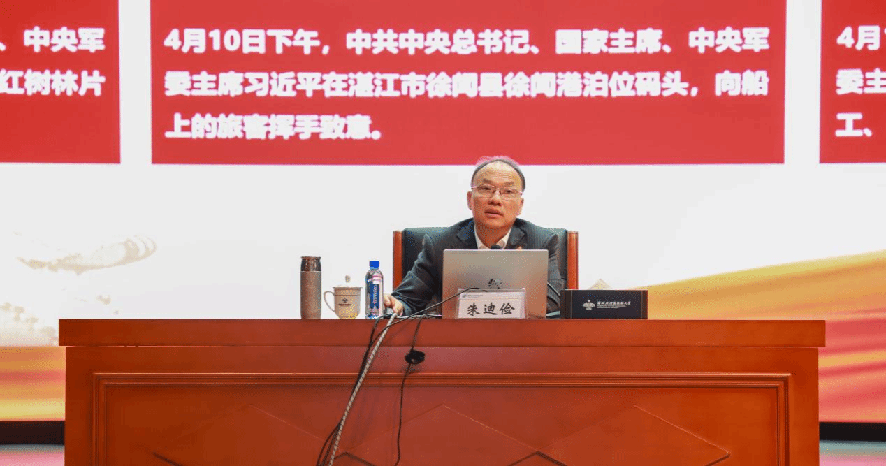 市委宣講團成員、學校黨委書記朱迪儉結合國際形勢、自身的工作生活經歷以及學校的發展建設,為師生講明了習近平總書記視察廣東的重要背景及重大意義,帶領大家深刻領會習近平總書記賦予廣東的新使命新任務。