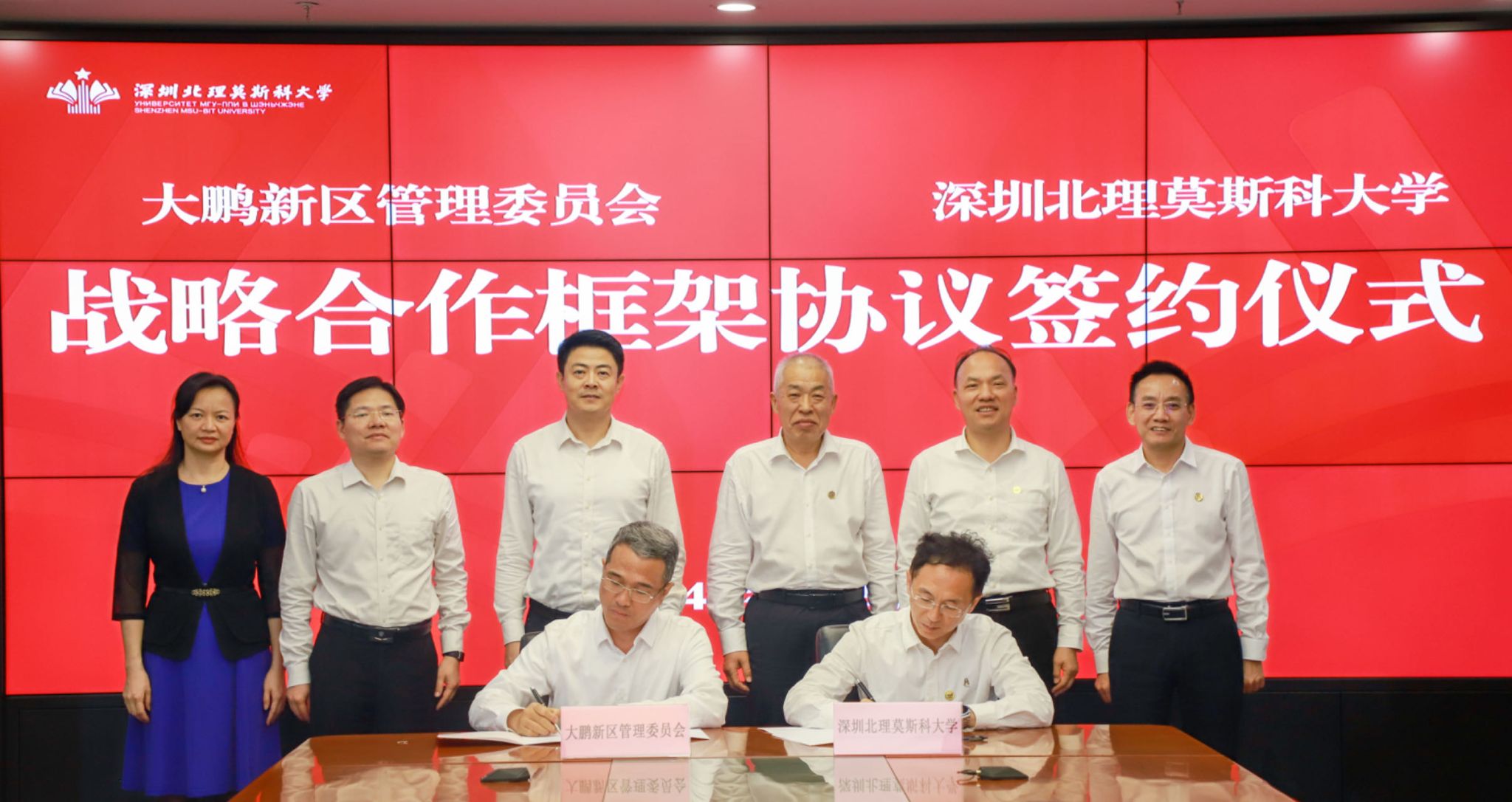 3月29日,大鵬新區與深圳北理莫斯科大學戰略合作框架協議簽約儀式在我校舉行。大鵬新區黨工委書記劉廣陽,深圳北理莫斯科大學校長李和章,深圳北理莫斯科大學黨委書記朱迪儉,深圳北理莫斯科大學黨委副書記、紀委書記陳超峰,大鵬新區領導陳文盛、馬文鋒等出席簽約儀式。
