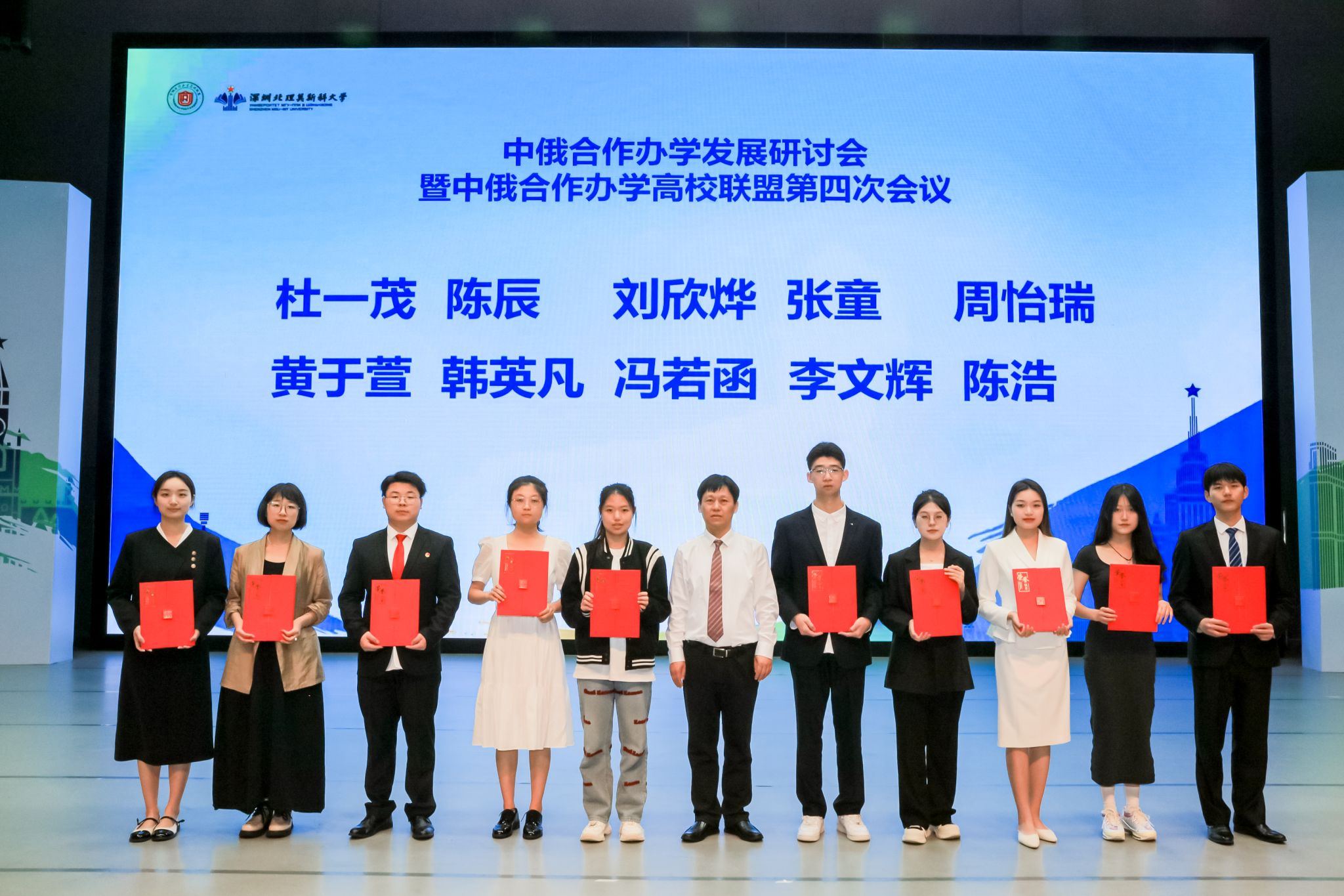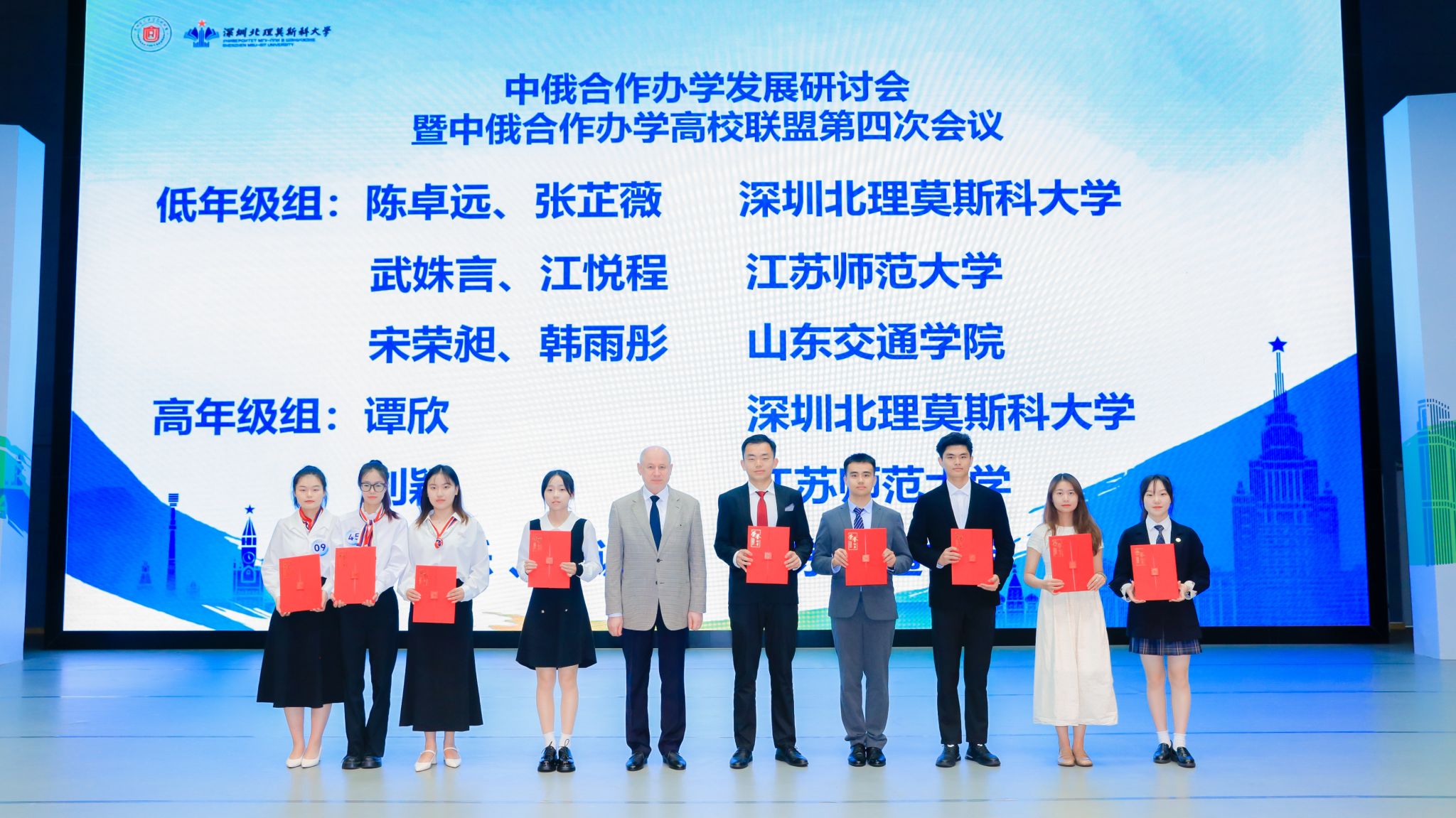中俄合作辦學高校聯盟秘書長李延齡通報了中俄合作辦學高校聯盟情況,與會領導嘉賓為俄語演講比賽獲獎選手頒獎。深圳北理莫斯科大學陳卓遠、張芷薇同學獲得低年組一等獎,譚欣同學獲得高年級組一等獎。