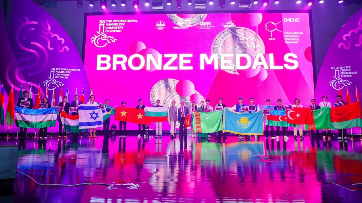 隨后,進行第58屆中學生門捷列夫國際奧林匹克化學競賽閉幕式的重頭戲——“第58屆中學生門捷列夫國際奧林匹克化學競賽頒獎儀式”,頒獎嘉賓分別為獲得銅牌、銀牌、金牌、最佳理論獎與最佳實驗獎、魯寧獎的參賽選手頒獎。