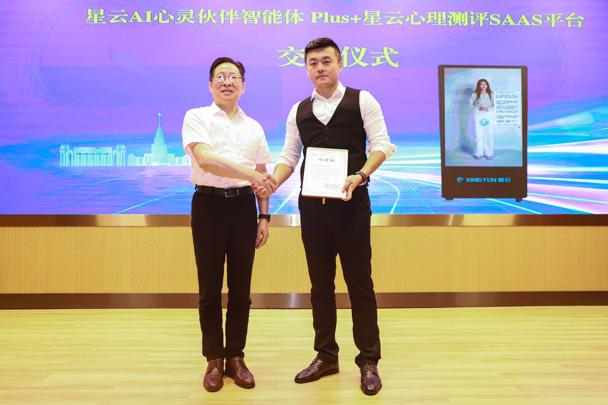 搶答活動結束后,深圳市健成星云科技有限公司向深圳北理莫斯科大學心力成長中心劉鐵榜工作室捐贈星云AI心靈伙伴智能體 Plus+星云心理測評SAAS平臺,公司CEO王喆蒞臨交付儀式并做產品介紹,劉鐵榜向捐贈企業頒發感謝狀。