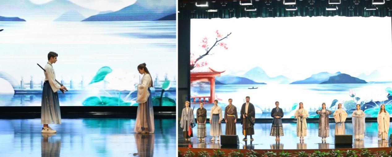 最后《華服霓裳秀》作為壓軸節目華麗登場。伴隨著優美樂聲,身著漢服的國際學生們緩步前行,頷首致意,光影流轉,衣袂飄飄。在觀眾熱烈的掌聲中,演出畫上了圓滿的句號。