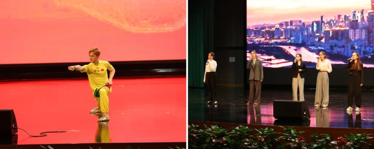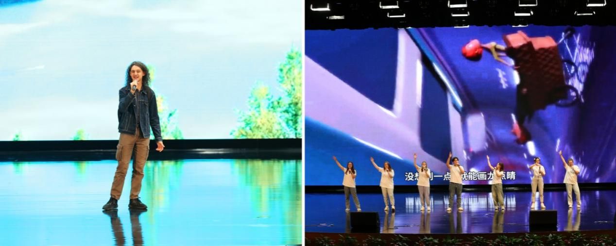 在開場節目《愛丫愛丫》的歌聲中,晚會正式拉開帷幕。此次晚會語言類節目十分豐富,國際學生們深情演繹了《我喜歡出發》《你是人間四月天》《愛》等經典文學作品。還有原創節目《后羿射日的故事》《結緣中國》展現了學生們不俗的創造力。歌曲類節目則兼容古風與現代:《左手指月》高昂悠揚;《我們不一樣》質樸動人;《改變自己》動感十足。同學們在舞臺上用中文盡情展示青春魅力,贏得陣陣掌聲。
