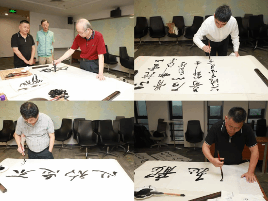 開幕式當天下午,深圳市委黨校原校長陳圖深,坪山區人大常委會副主任楊勇,深圳市書法家協會理事、深圳市龍崗區書法家協會顧問、深圳市龍崗區文化廣電旅游體育局二級調研員閔玉輝,深圳市龍崗區書法家協會副主席閆平和深圳市書法家協會理事高榮明現場揮毫祝賀文博會深北莫分會場開幕。