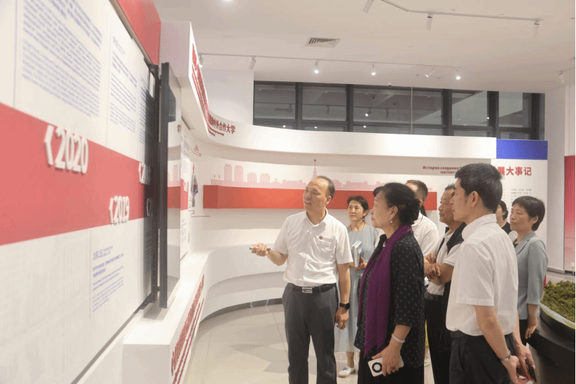 趙少華一行先后參觀了在大學禮堂展出的中俄優品展、“藝術之光:藝術與科技視域下的古畫與陶瓷展”、“風帆時代——海洋藝術作品展”;在圖書館展出的“書香俄羅斯”中俄書展以及校史館、《恰同學少年——留蘇檔案見證百年復興路》主題展覽等。