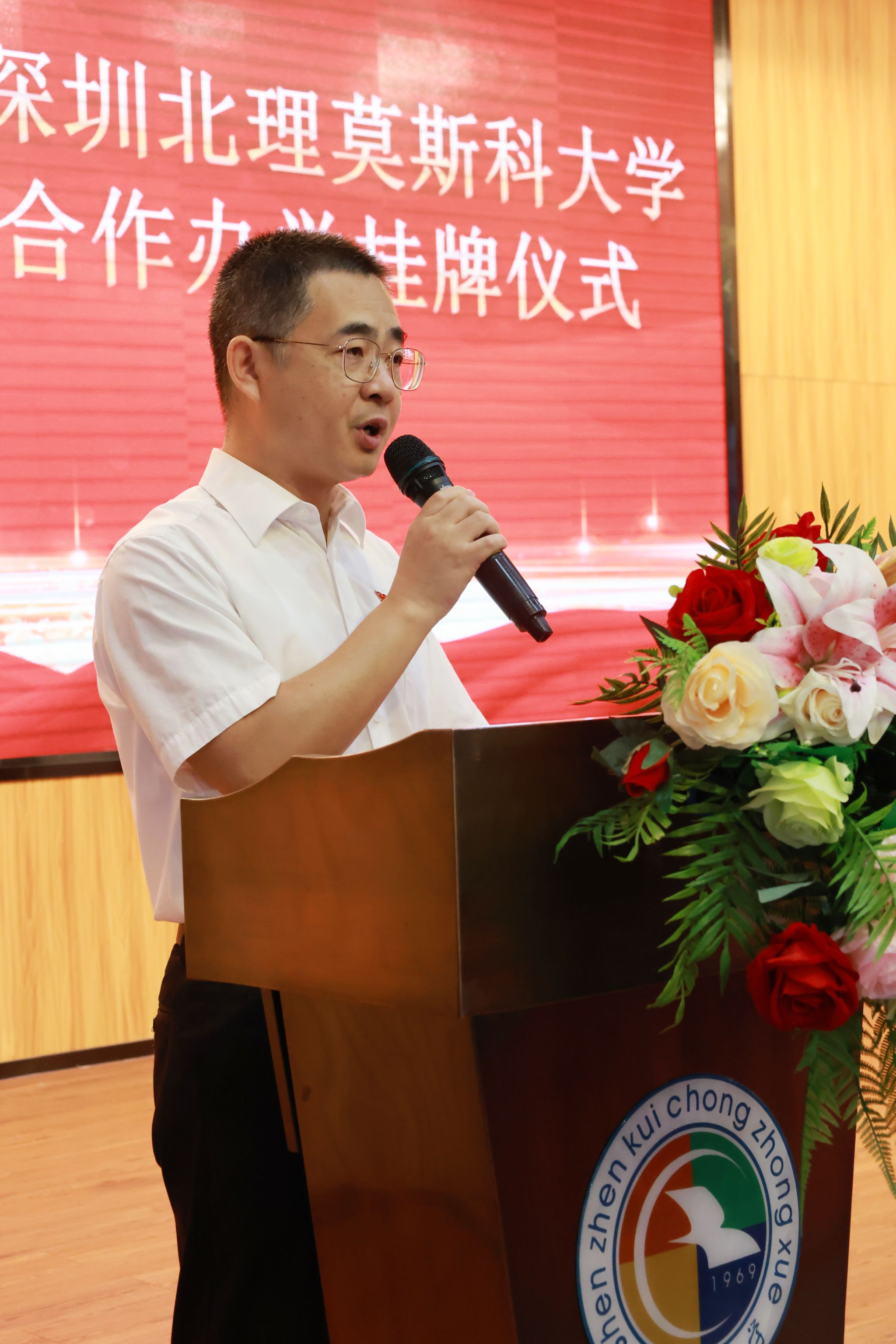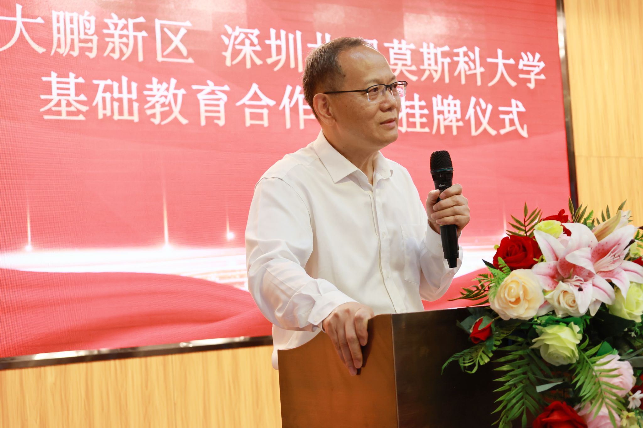 6月5日上午,深圳北理莫斯科大學與大鵬新區基礎教育合作辦學的掛牌儀式在葵涌中學舉行,標志著深圳北理莫斯科大學與新區合作辦學進入實質階段。大鵬新區黨工委委員、管委會副主任陳文盛,教育和衛生健康局副局長劉瑞琦、四級調研員張勛懷,深圳北理莫斯科大學黨委書記、副校長朱迪儉,基礎教育集團總校長盧鴻鳴、常務副總校長皮愛民等共同上臺為合作辦學學校揭牌。