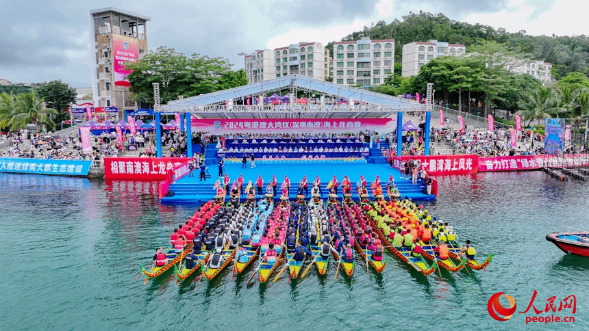 比賽當天,來自粵港澳大灣區各城市的12支隊伍齊聚于碧波蕩漾的廣闊海面上,選手們身著統一的隊服,精神抖擻,隨著裁判的一聲哨響,龍舟如離弦之箭般沖出起點,河面上頓時響起陣陣鼓聲和吶喊聲。