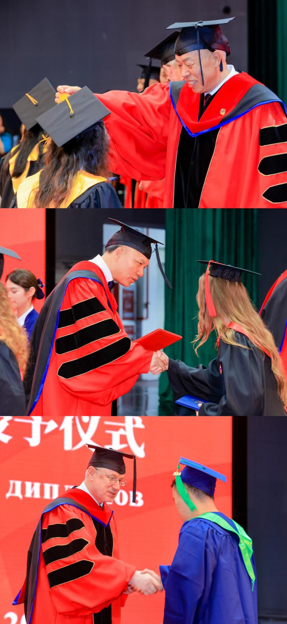 隨后,伊萬琴科第一副校長宣讀深圳北理莫斯科大學學位授予決定。李和章校長、朱迪儉書記、伊萬琴科第一副校長以及各系系主任分別為畢業生撥穗正冠,頒發學位證書和畢業證書。