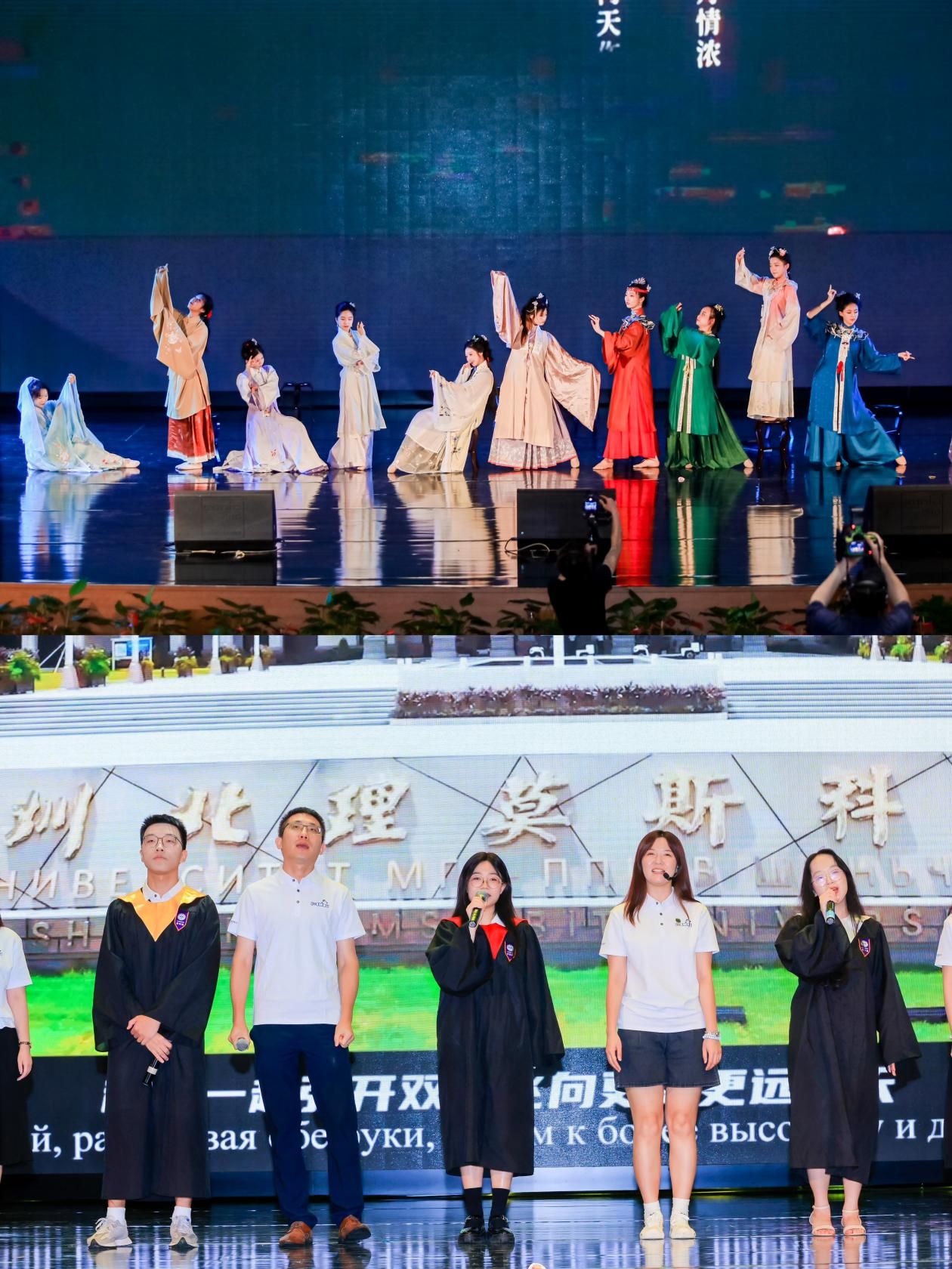 深圳北理莫斯科大學校長李和章,第一副校長伊萬琴科,黨委書記朱迪儉出席典禮;2024屆畢業生、在校師生以及畢業生家長通過線下和線上共同見證2024屆畢業生即將開啟人生新征程的重要時刻。典禮由2024屆語言系本科畢業生馮鈺垚主持。