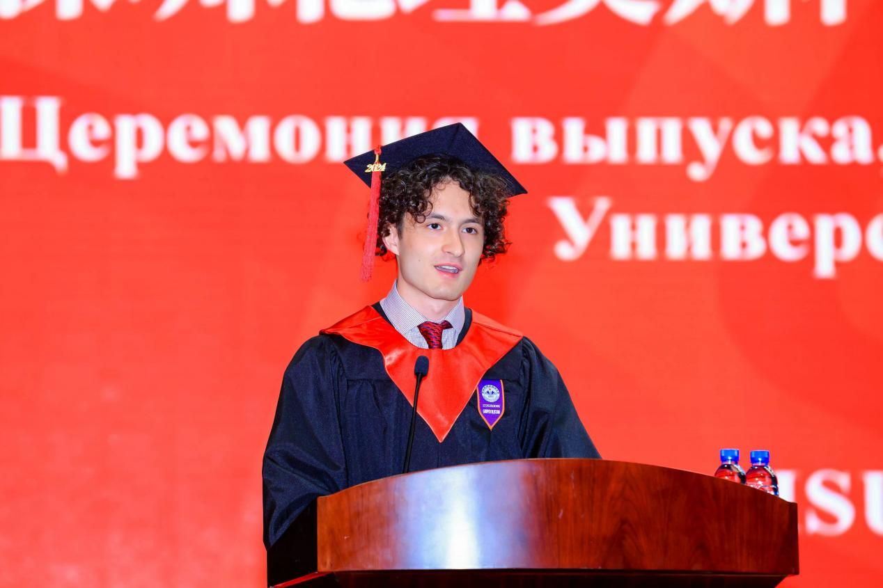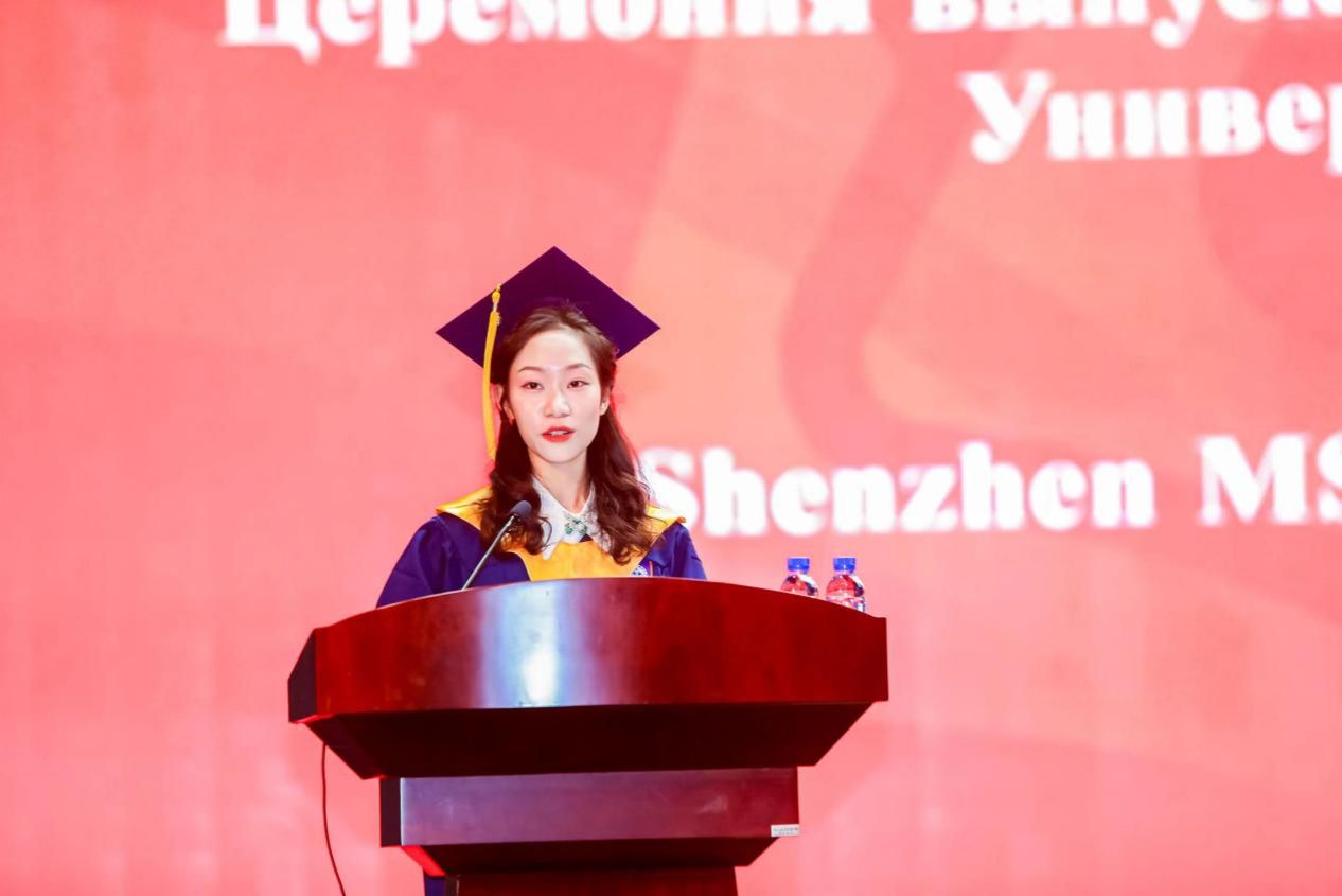 2020級經濟系本科生魯斯塔姆·加里波夫作為國際學生代表回顧了在深北莫充實、難忘的學習生涯。這段學習經歷不僅提升了他的語言和專業能力,更拓寬了國際視野,讓他深刻體會到大學的獨特性。雙學位的授予、深厚的漢語底蘊、扎實的專業知識、在中國的生活經歷、觀察事物的全新視角,這些讓他們比俄羅斯大學的普通畢業生更具優勢,他感謝中俄兩國政府、學校、師生及家長的支持與付出。