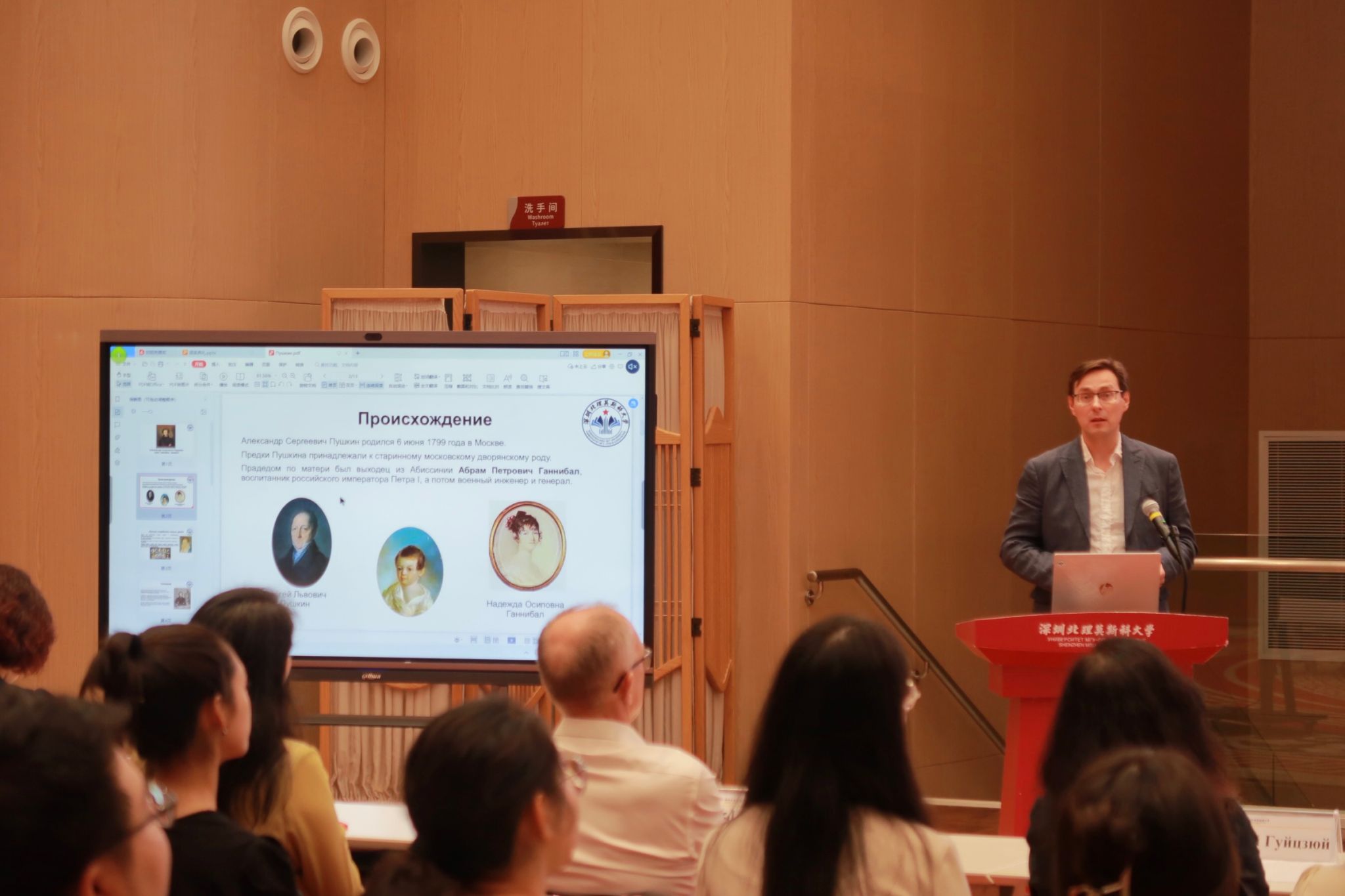 接下來,深北莫語言系科姆普列耶夫副教授以《亞·謝·普希金:詩人,人,象征》為題作了一堂精彩的講座,詳細展示了普希金的性格、生活和創作。