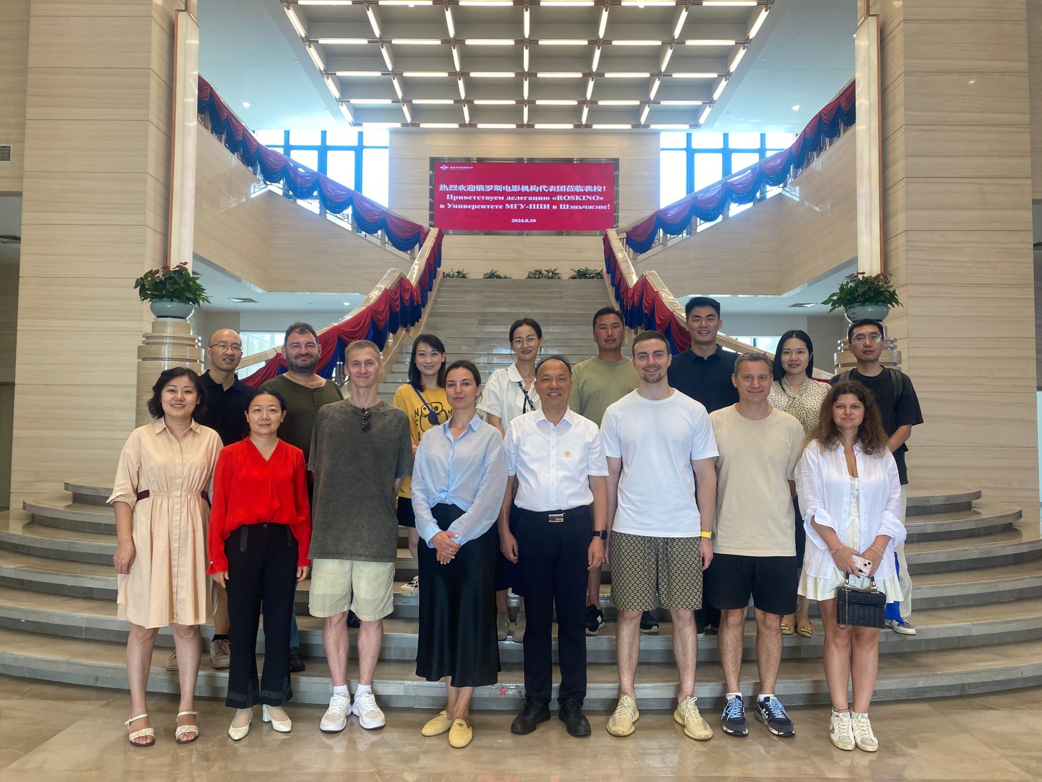 8月10日,俄羅斯國家電影公司ROSKINO代表團及中國電影資料館一行蒞臨深圳北理莫斯科大學訪問交流。代表團包括俄羅斯國家電影公司ROSKINO總經理安東諾娃女士、知名導演盧卡切夫斯基(影片《白鶴起舞之地》導演)、科洛梅茲(影片《光》導演)以及《我親愛的怪獸》執行制片人吉蒂斯等。