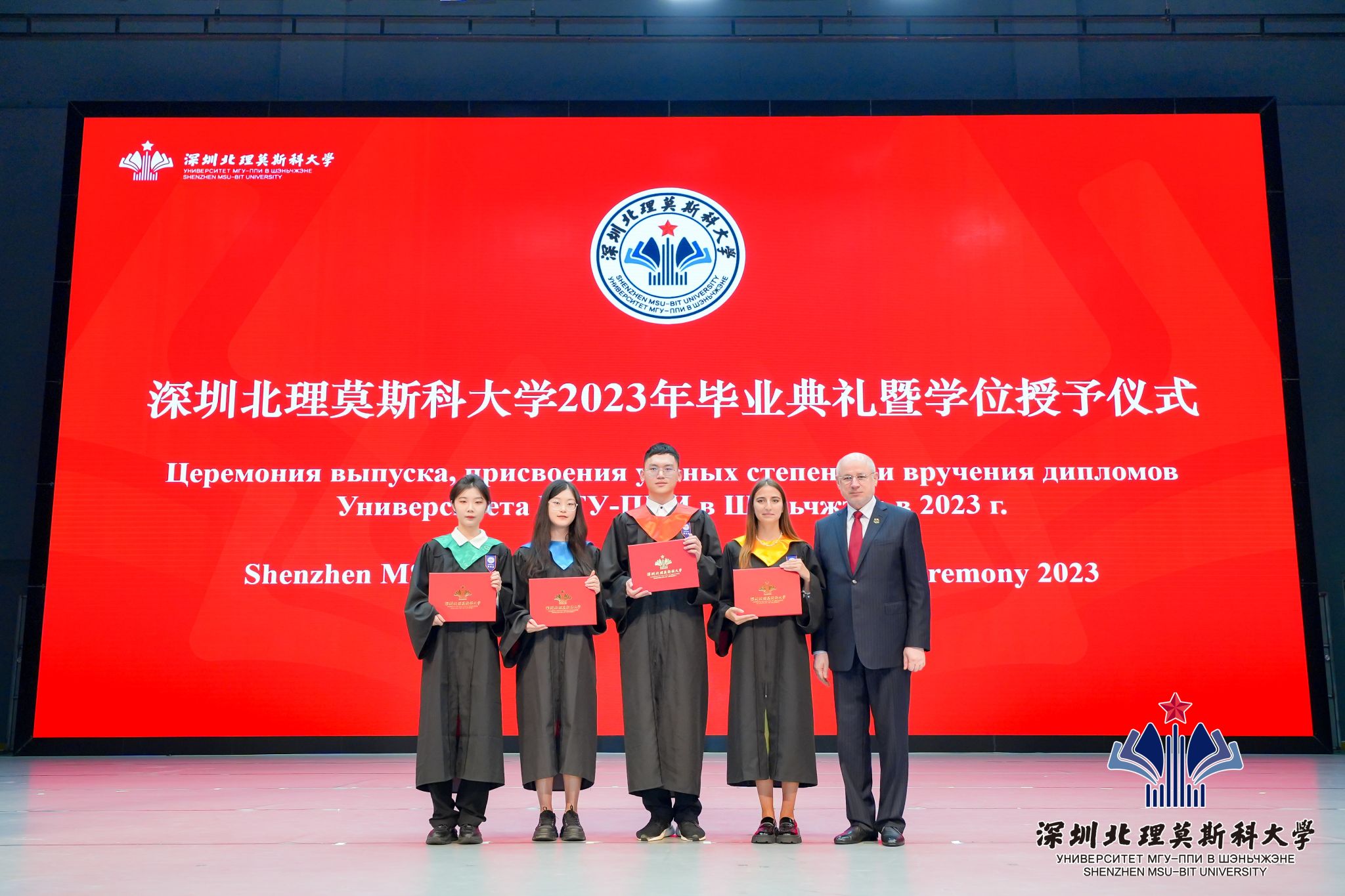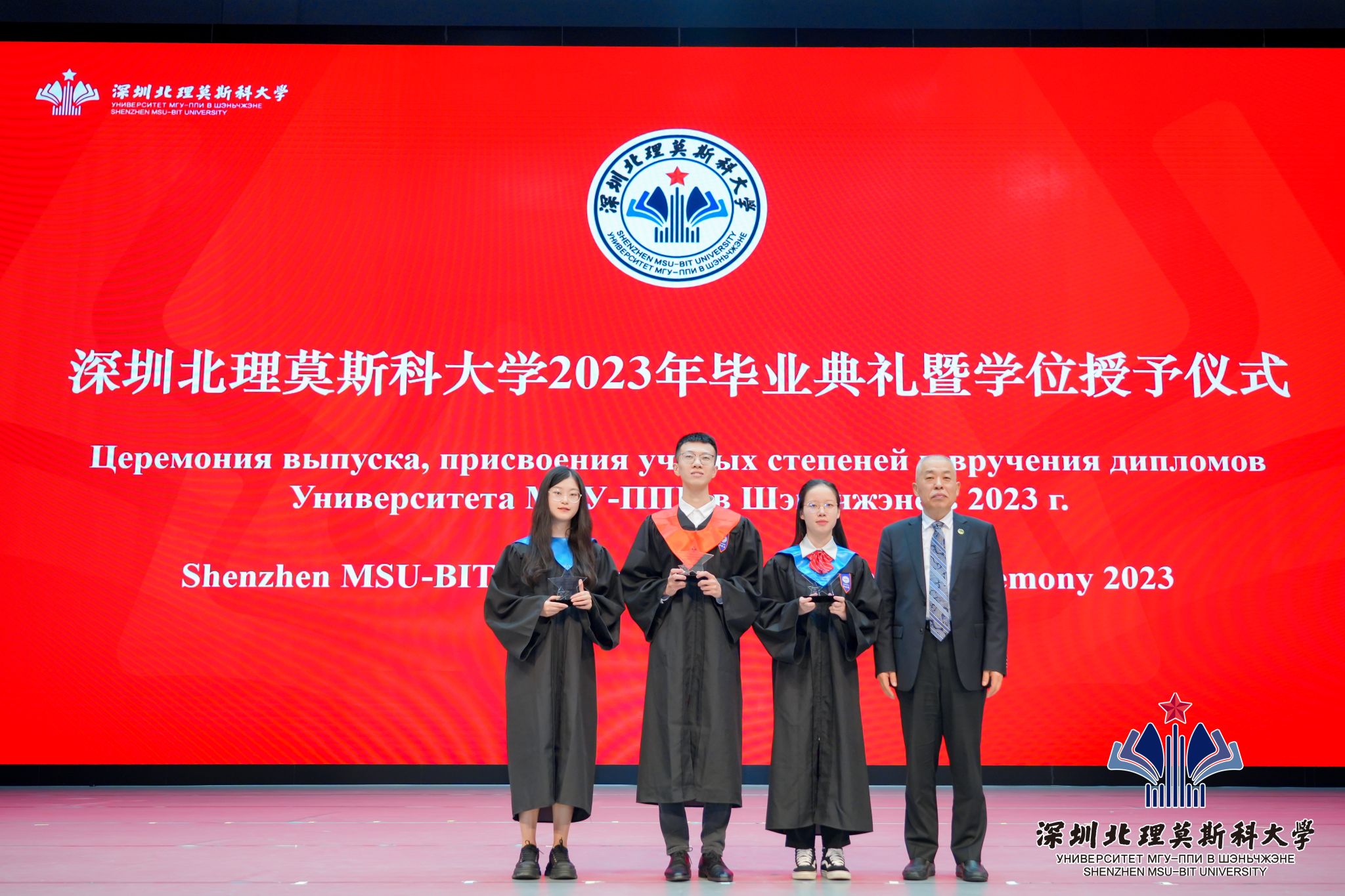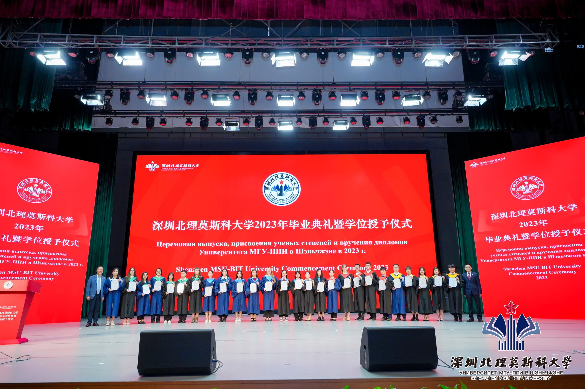6月21日,深圳北理莫斯科大學2023年畢業典禮暨學位授予儀式在學校禮堂舉行,183名本科生(含19名國際生)和91名研究生(含5名國際生)圓滿完成學業,從深北莫揚帆起航,開啟嶄新的人生征程。