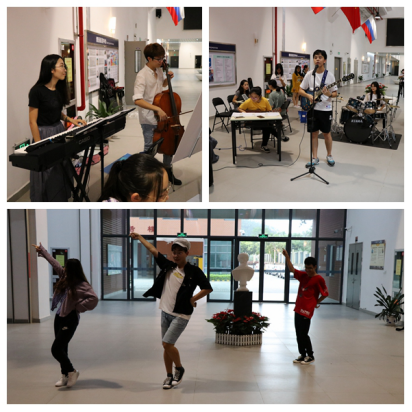 同時,歌曲演唱、樂器彈奏、舞蹈等表演穿插其中,吸引了大批同學的駐足圍觀,場面熱鬧而歡快。值得一提的是,有多名外籍教師對書法藝術產生了濃厚的興趣,向書法社的同學求學,現場臨摹。