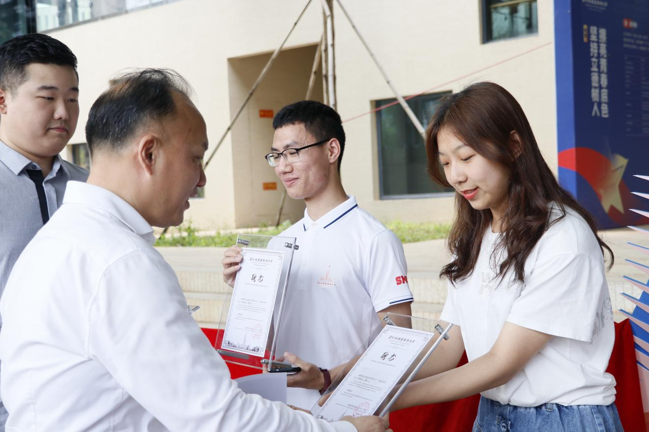 朱迪儉為李毓茂、胥勵梅、馮鈺垚三位同學頒發“深北莫故事”青年宣講團聘書并發表揭幕式致辭。他提到,2021年,中國共產黨將迎來百年華誕,中俄關系將迎來《中俄睦鄰友好合作條約》簽署20周年,學校也將迎來第一屆本科畢業生,在這樣的特殊時代背景下,每位學子都需要感恩時代,感恩母校,胸懷大志,扎根時代使命而奮斗。學校的發展離不開學生的發展,學生的發展就是學校最大的發展,因而廣大學子要高舉科學和合作的旗幟,強體健魄,追求卓越,把個人成長融入到科學攀登與合作共贏的深北莫發展時代坐標中,與學校共成長。此外,朱書記還圍繞學校發展就當前重點科研項目和洽談進度做了簡單介紹。