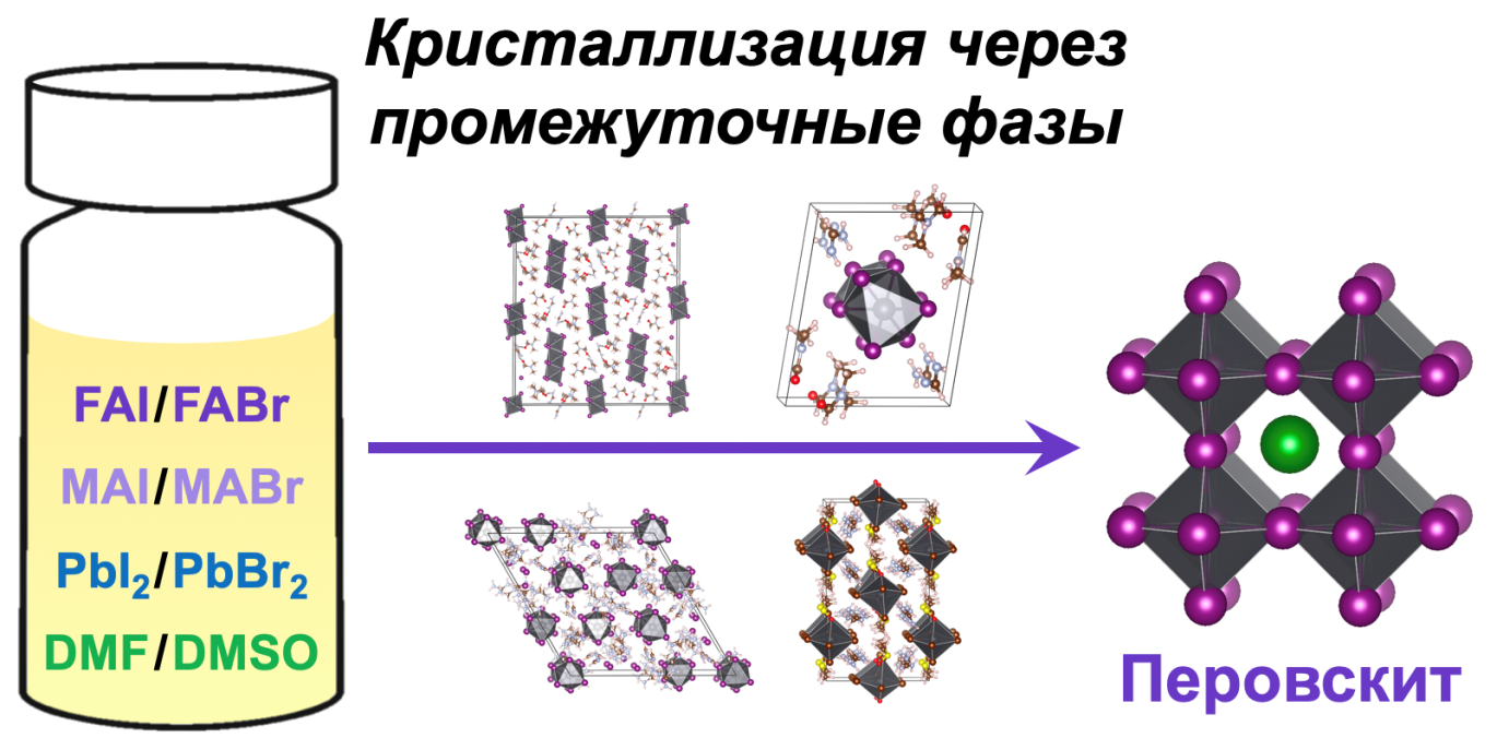 圖2:溶液法通過中間相形成鈣鈦礦晶體的過程示意圖
