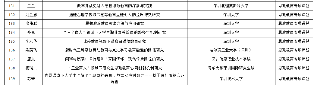 近日,根據《深圳市教育局關于組織申報深圳市教育科學“十四五”規劃2021年度課題的通知》,深圳北理莫斯科大學思政老師王蘭申報的《改革開放史融入高校思政教育的探索與實踐》獲批立項,立項類別是思政教育專項課題。