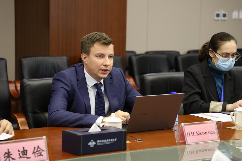 17日北京時間下午14時,研討會正式開幕。深圳北理莫斯科大學黨委書記、副校長朱迪儉,學術事務部部長彼得·卡爾梅科夫出席開幕式并致辭。黨委副書記、紀委書記陳超峰,漢語中心主任王瑋和國際學術交流合作部副部長卡佳·納杰日金娜共同參加了開幕式。