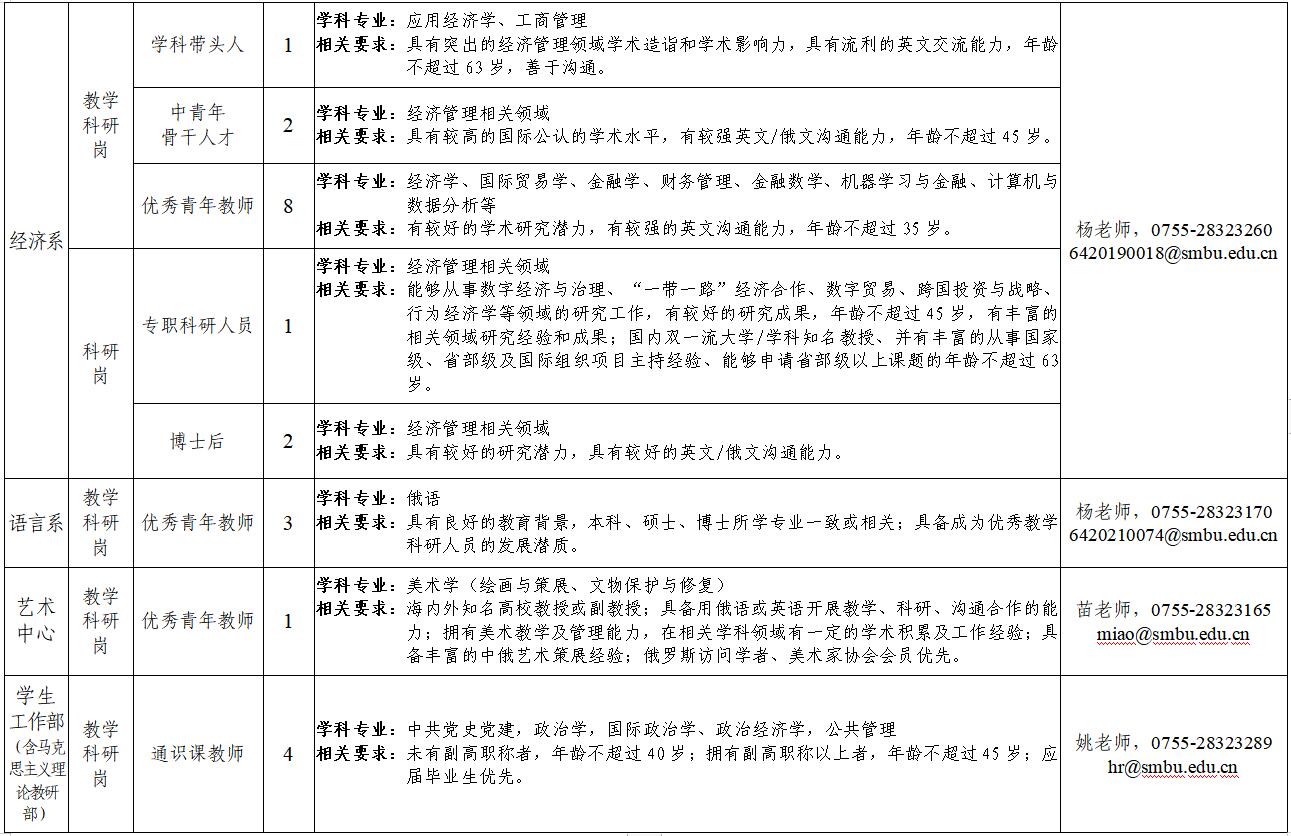 1、有意應(yīng)聘者請填寫附件崗位申請表(中英或中俄版本,詳見附件1、2或1、3),連同個(gè)人中英或中俄雙語簡歷、佐證材料等一并發(fā)送至:組織人力資源部郵箱(hr@smbu.edu.cn)及擬應(yīng)聘部門聯(lián)系郵箱(詳見人才需求計(jì)劃表)。郵件標(biāo)題請注明:應(yīng)聘部門+崗位+學(xué)科專業(yè)+姓名,如:經(jīng)濟(jì)系+教學(xué)科研崗(優(yōu)秀青年教師)+金融學(xué)+某某某。