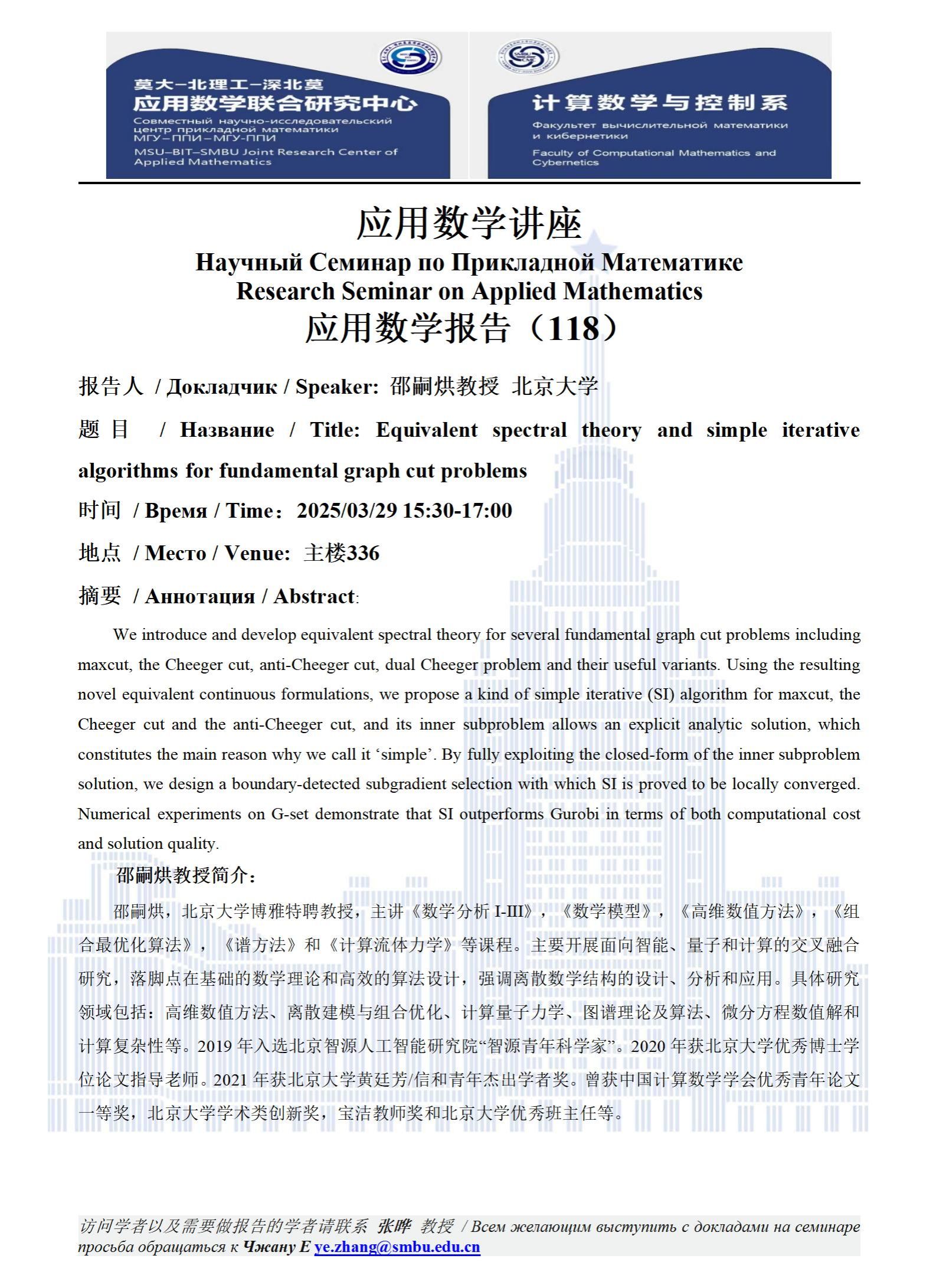 【講座預告】應用數學講座——應用數學報告(117)(118)