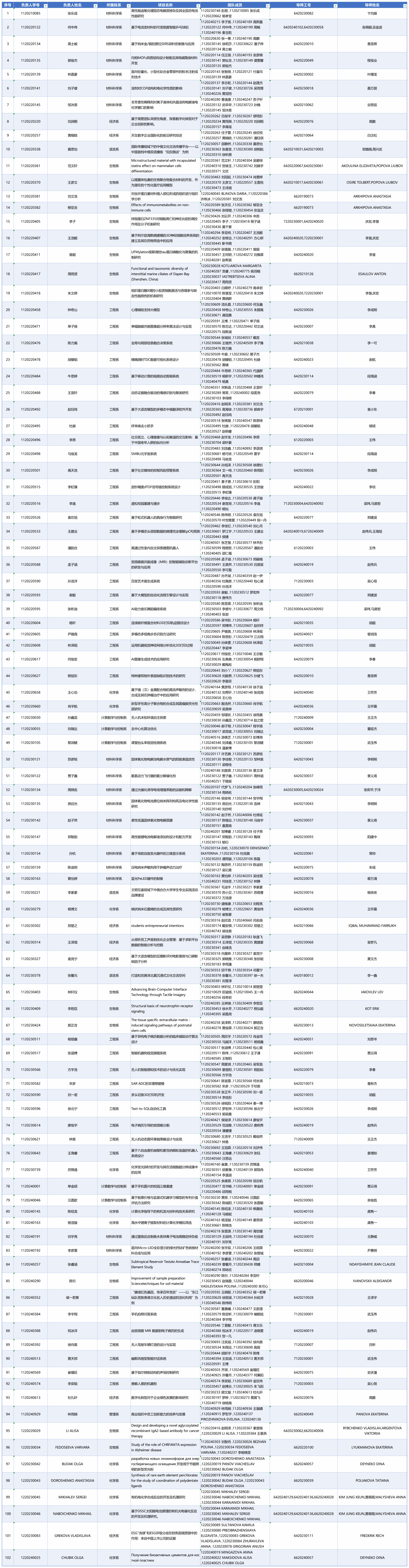 為充分調動全校學生參與創新研究活動的積極性、主動性和創造性,培養學生的創新思維和創新意識,提高學生的創新能力,在全校上下形成創新教育的良好氛圍。學生工作部前期面向全校開展項目征集、師生互選、系統申報等環節,現將2024—2025年度校級“大學生創新創業訓練計劃”項目立項項目公示如下: