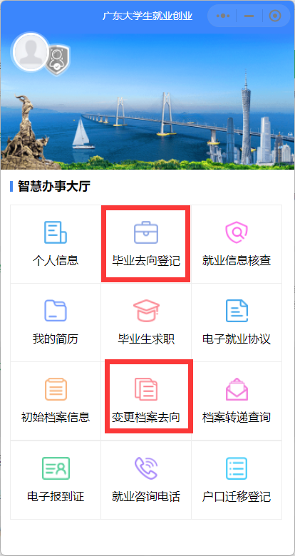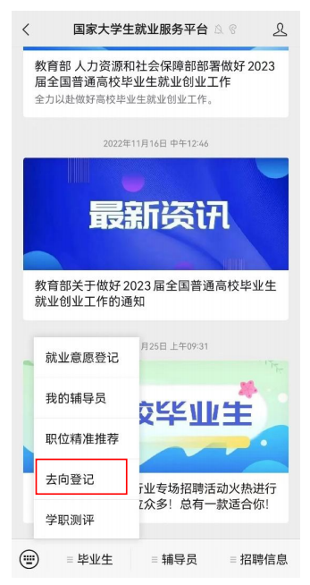 關注綁定“國家大學生就業服務平臺”公眾號,點擊“去向登記”直接登錄。
