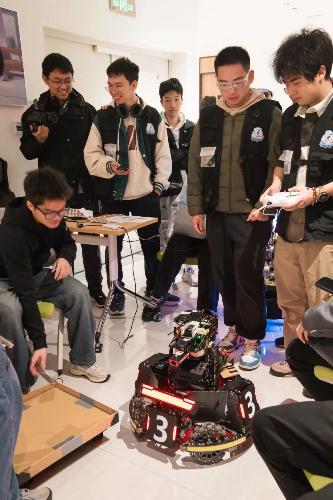 深北莫北極熊機器人社團2021年成立,從最初幾人因對機甲賽事的好奇和熱情發展到幾十人。社團不斷創新實踐,擁有完善的計算機電控學習教育體系、一流的工程操作器械設施與機械設計和強大的算法計算軟件資源支持。