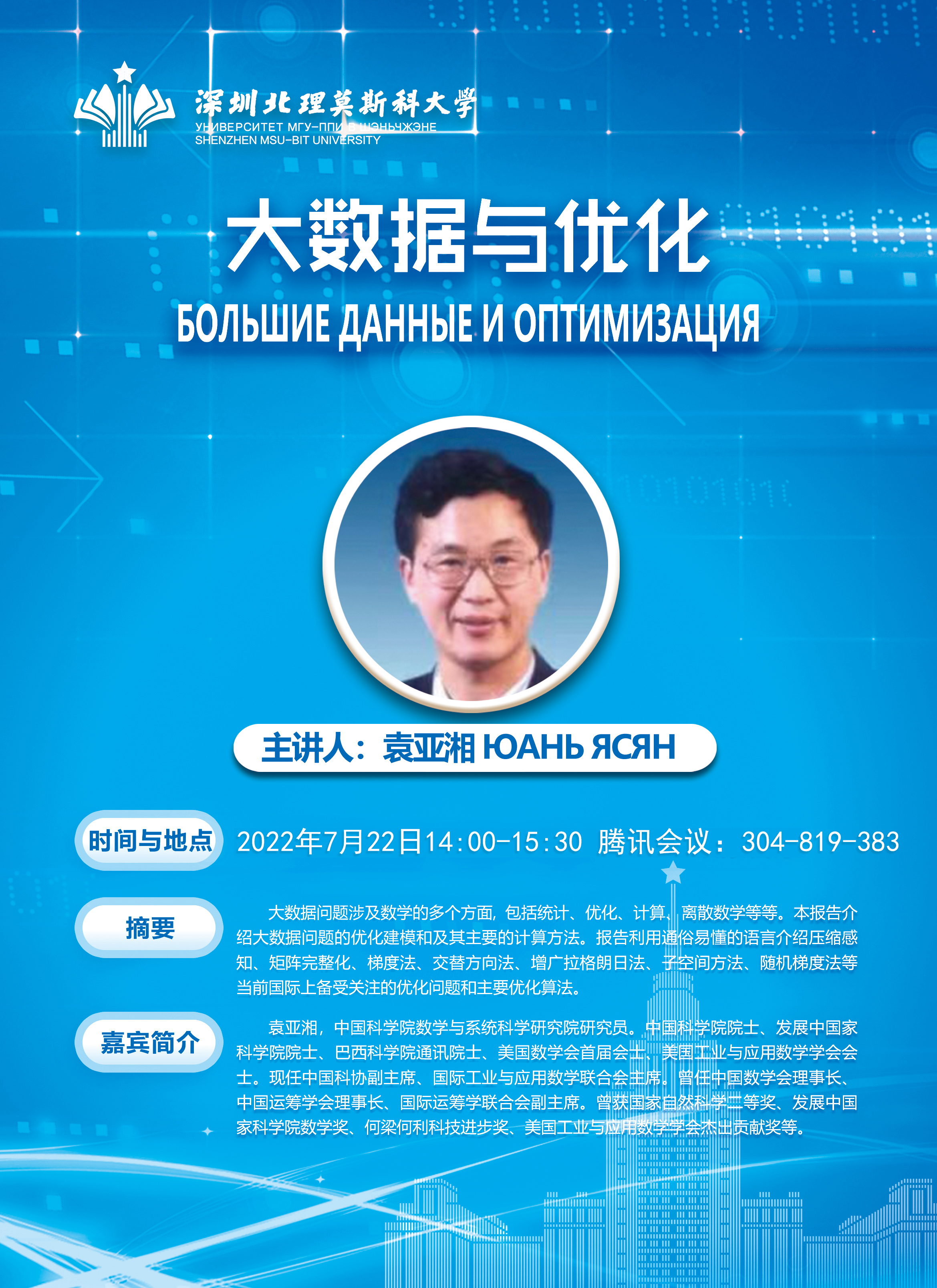 ? 大師講座 ————— 袁亞湘 院士 (22 Jul. 2022, 14:00-15:30)